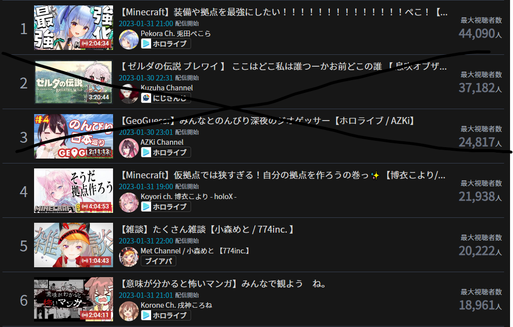 19) Nozomi (Nijisanji) - 61,597 - Debut stream