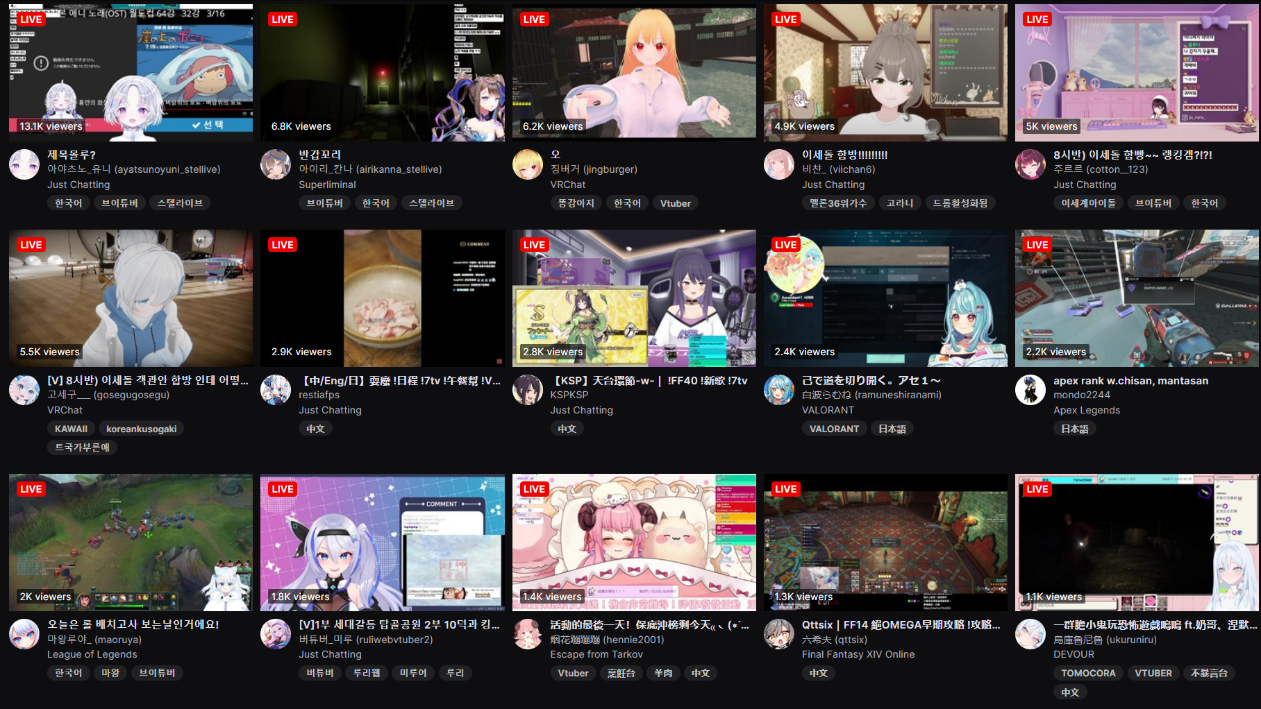 1x: Hololive, Koyori, Marine, Nerumero, Nijisanji, Nozomi, Polka, Roco, Subaru, Suisei, Toya, Watame, Yashiro