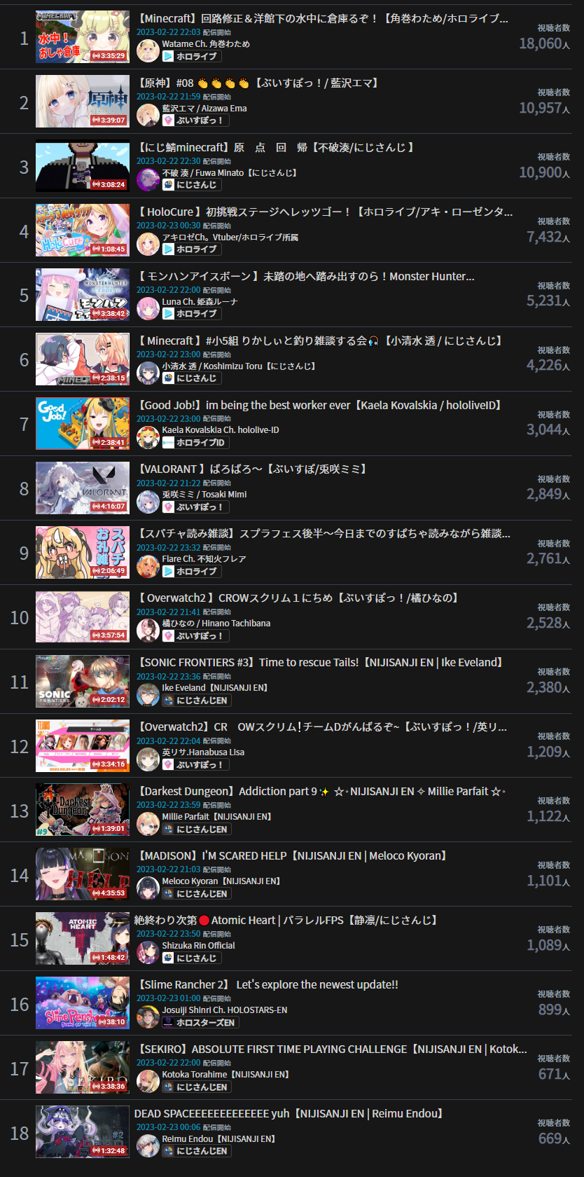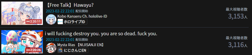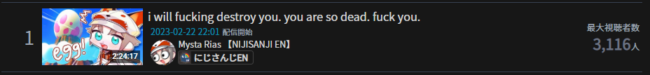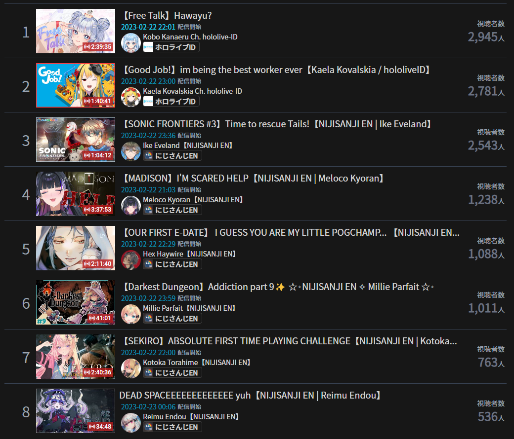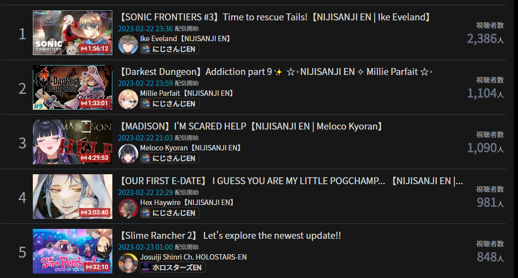 3) Nijisanji (Nijisanji) - 102,840* - 5th anniversary stream