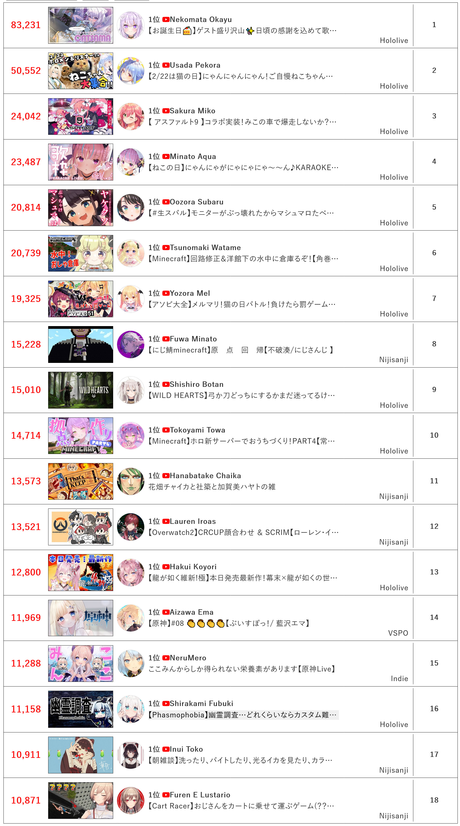 22) Okayu (Hololive) - 83,231 - 3D birthday live