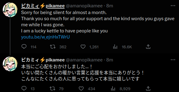 >>44110077And the announcement message from GYARI that her channel/archives will be taken down. We are super fortunate that Coco was able to negotiate her archive staying up. I'm sure there is some minor possible cost to a company for keeping a channel up when it isn't making money. For example, tail risk of YT moderation (and cost to deal with that), and/or legal bullshit. I can understand why a small company wouldn't want to deal with that risk.