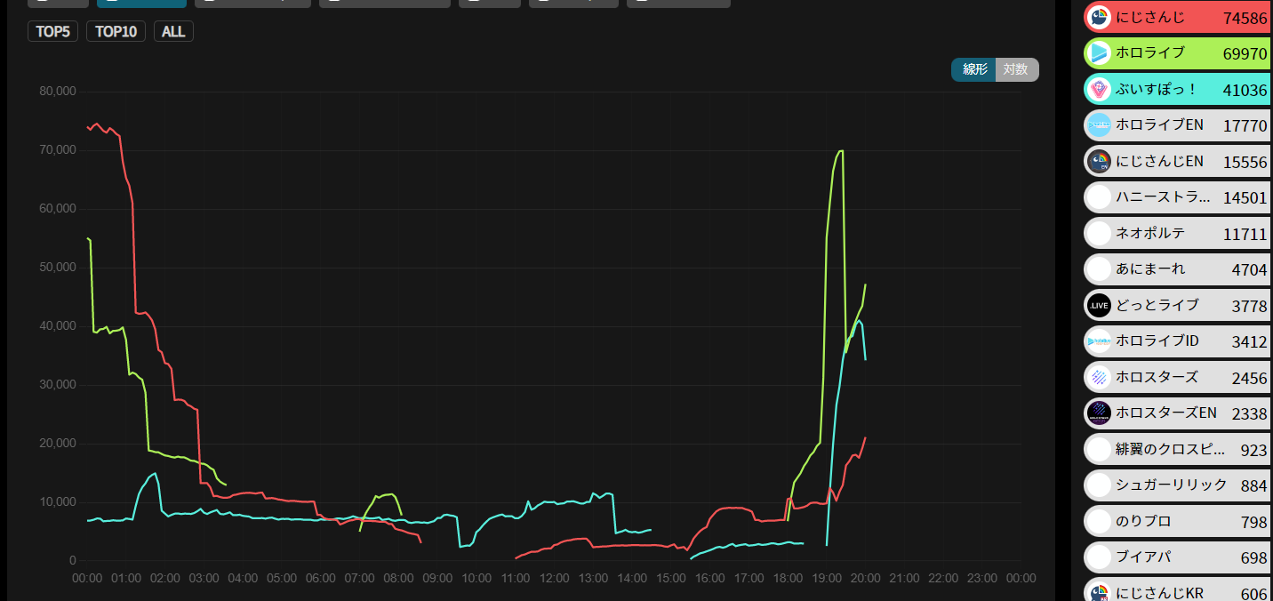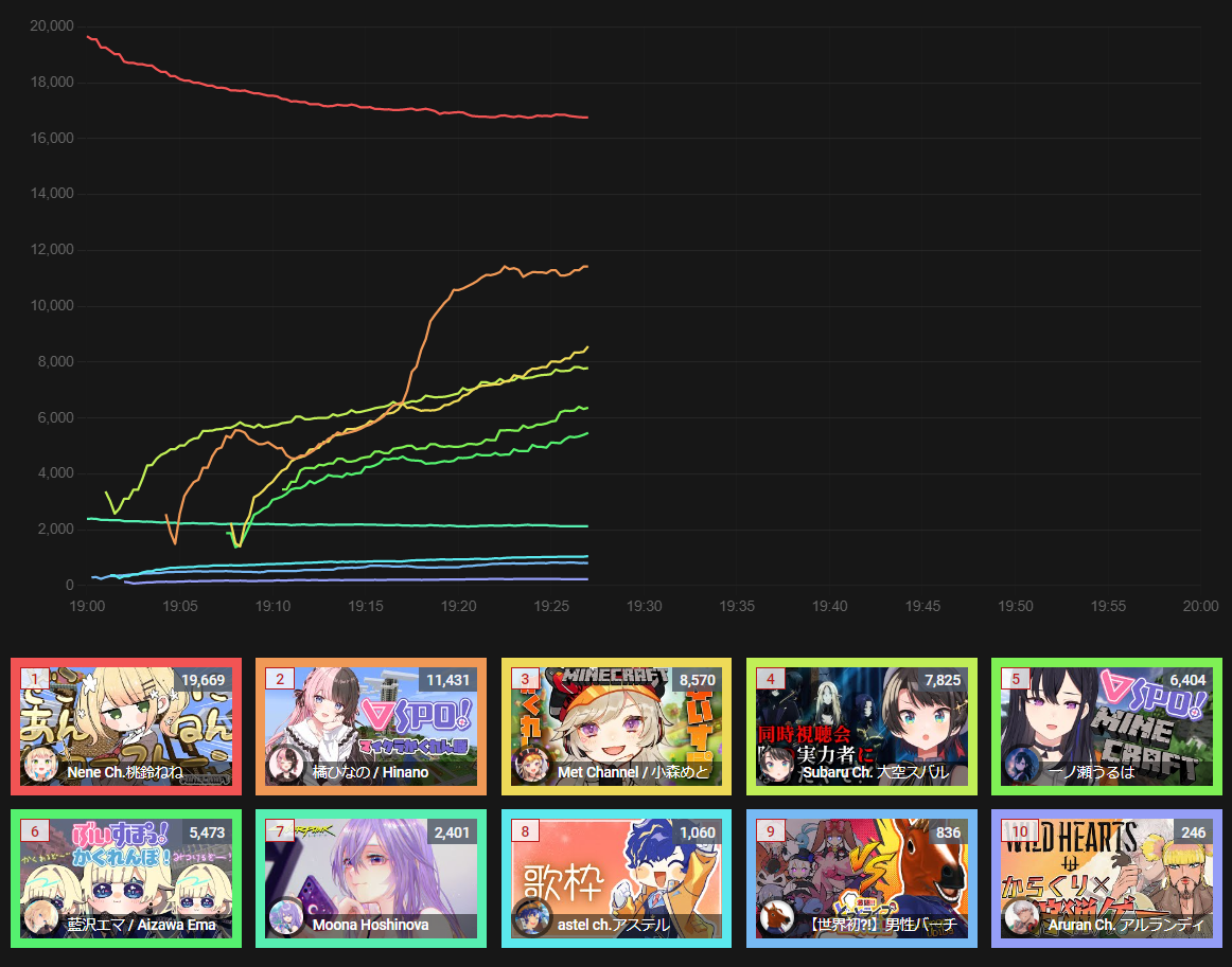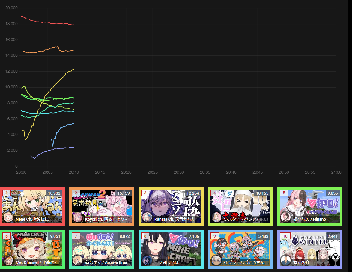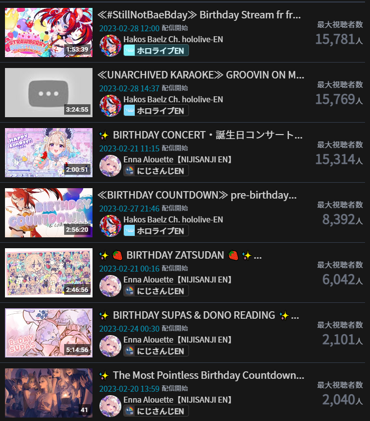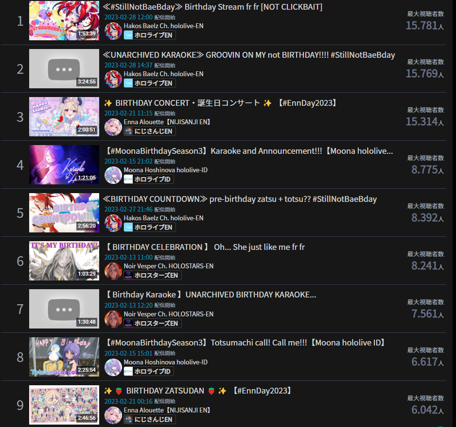 3) Nijisanji (Nijisanji) - 102,840* - 5th anniversary stream