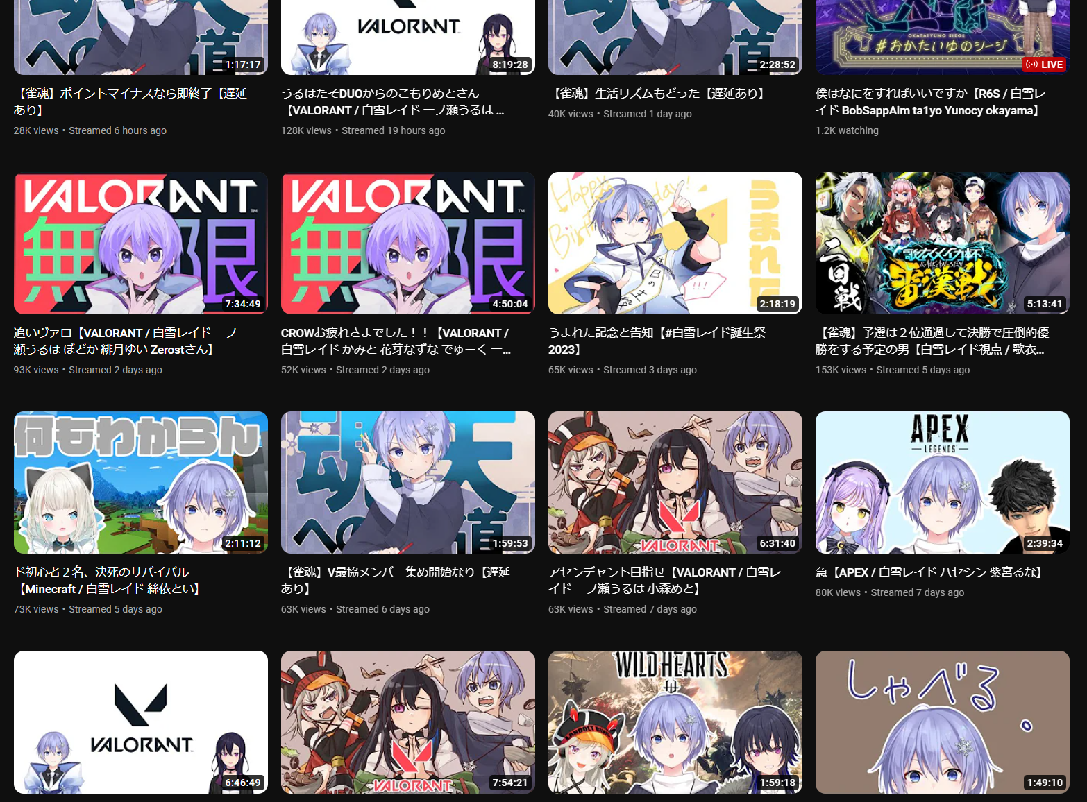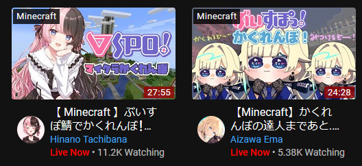 1x: Choco, Gaku, Himawari, Hinano, Ina, Kiara, Lamy, Miko, Mito, Mori, Nijisanji, Subaru
