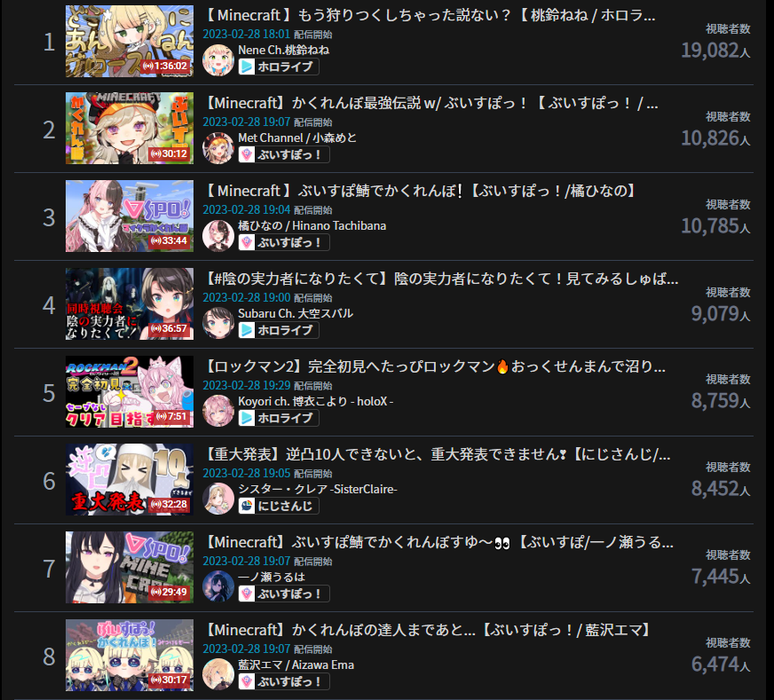 20) Pekora (Hololive) - 44,942 - Minecraft