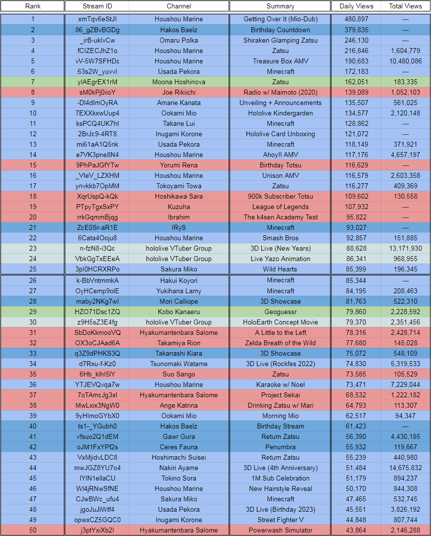 >>44010666>FEBRUARY 2023 GOLDS1) Marine (Hololive) - 48,323 - Drawing stream