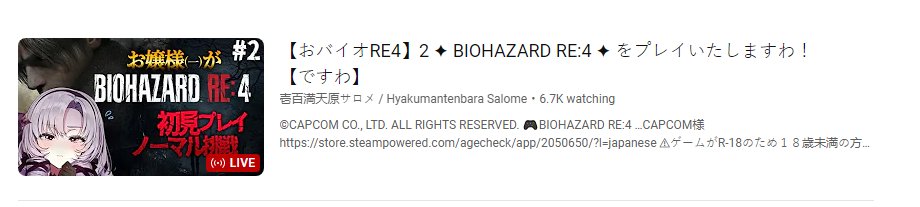 2 hours in... looks like Salome is aware this is going nowhere and will finish this crap in fewer long streams. Which is sad given how much free advertisement she gave to RE7 & village.