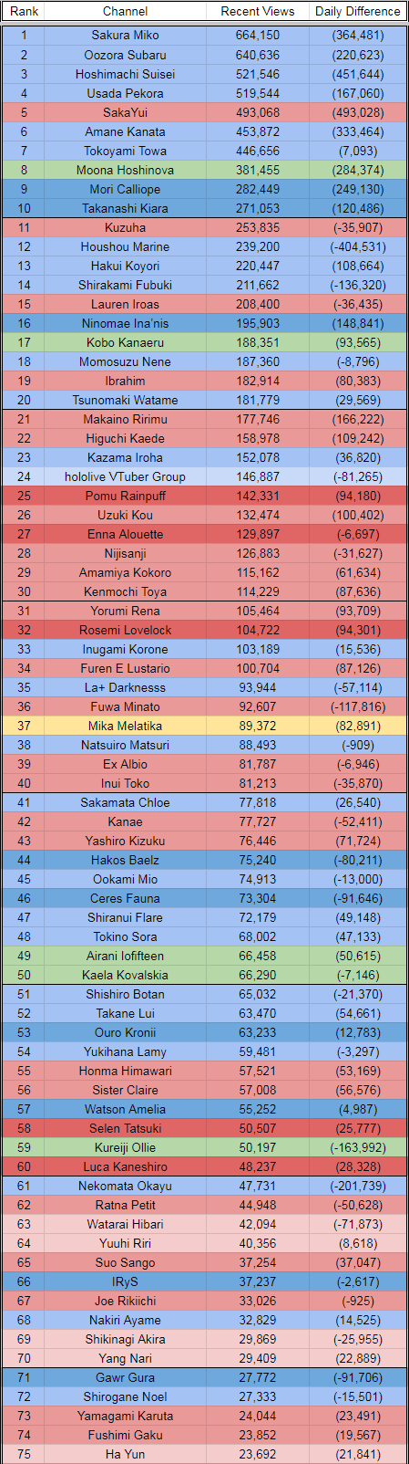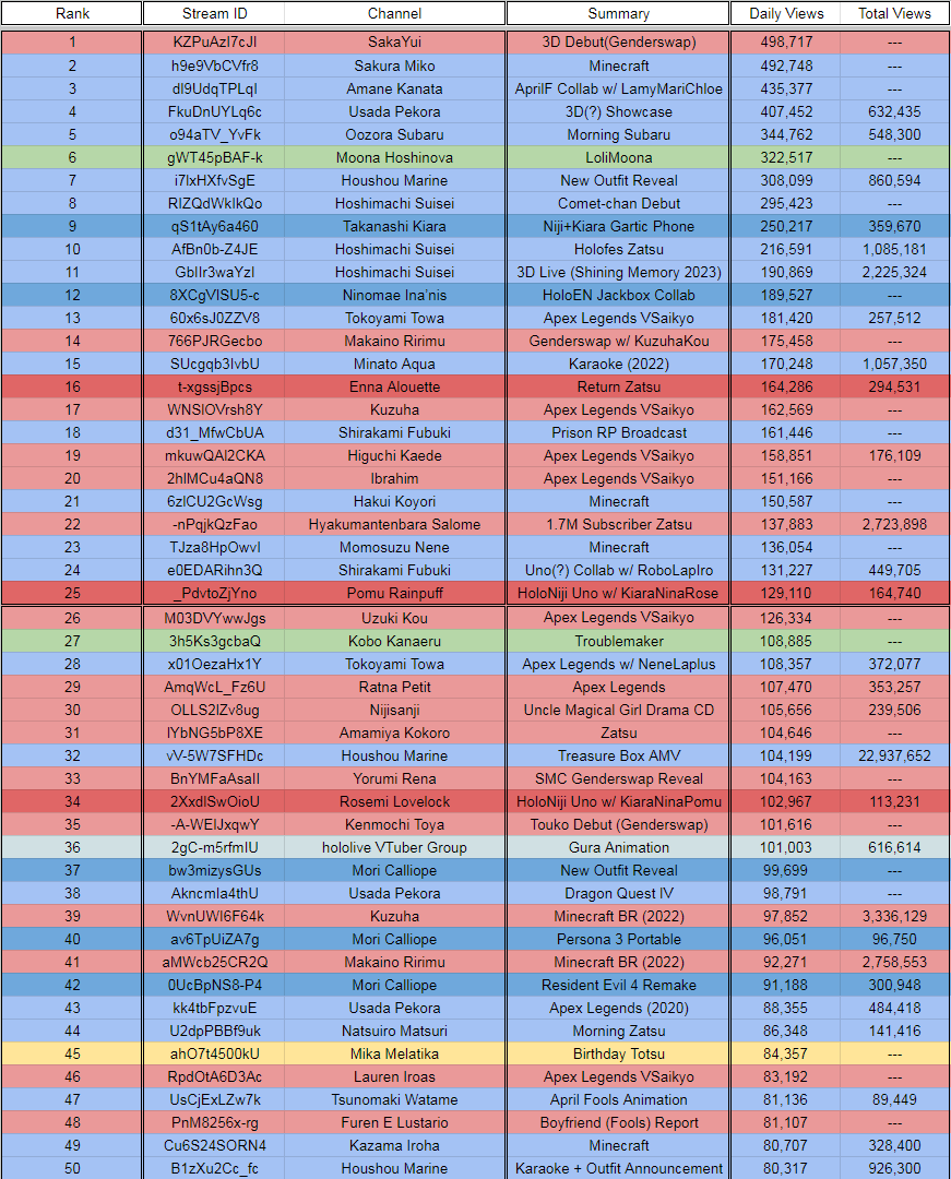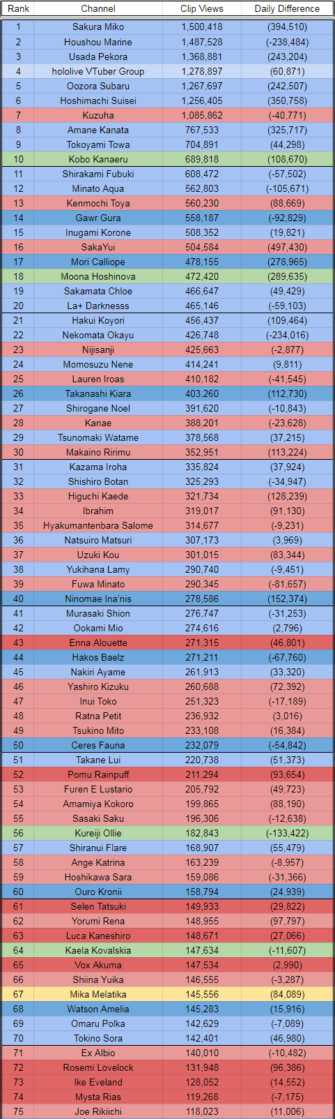 11) Lamy (Hololive) - 44,322 - Clubhouse 51 w/Kanata, Chloe & Marine