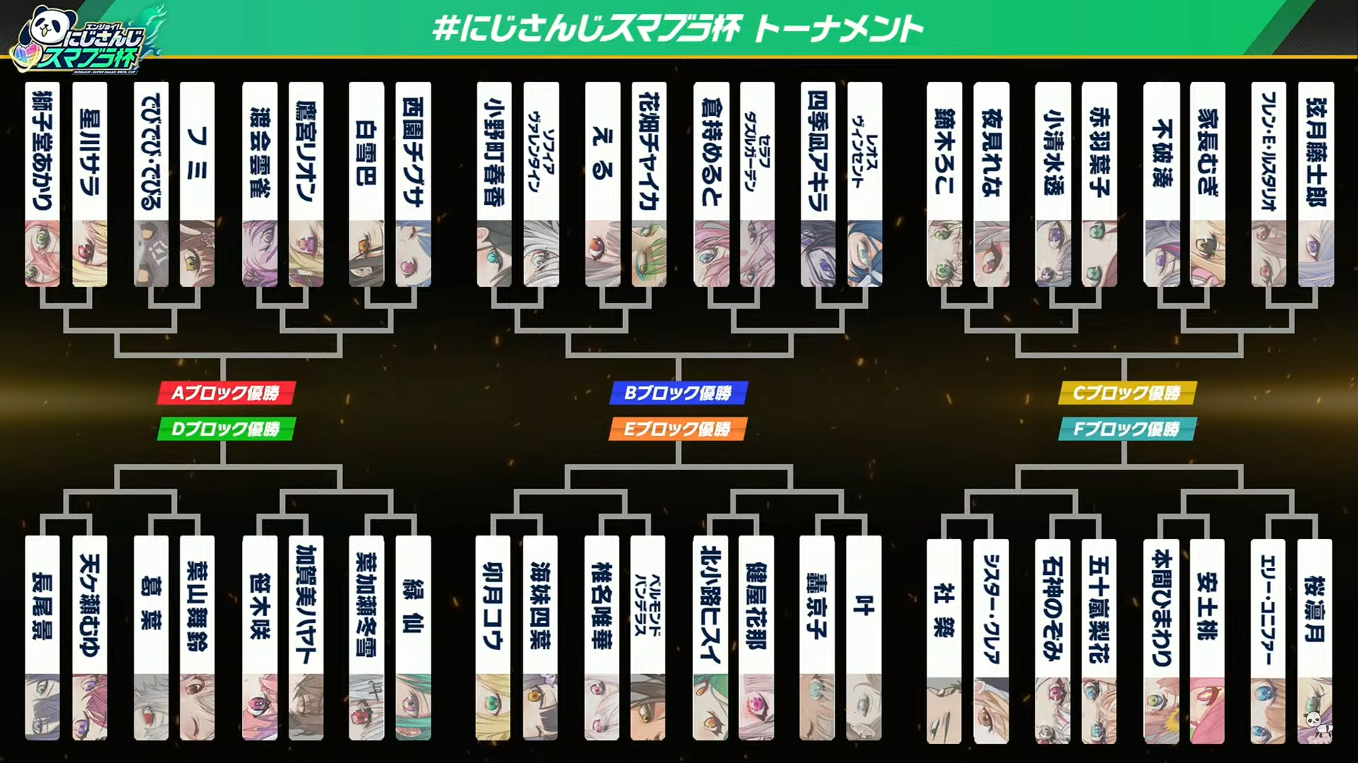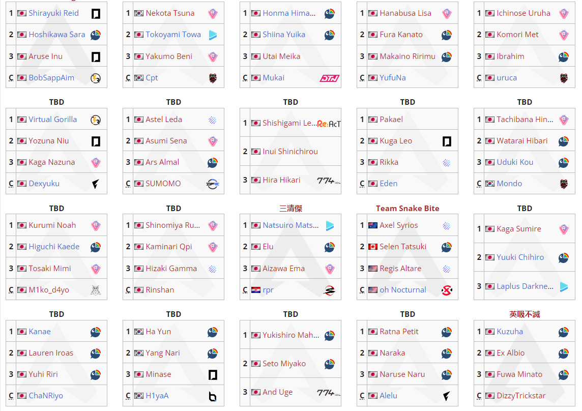 1x: Aqua, Ayame, Chiroru, Choco, Gaku, Gura, Hal, Himawari, Hinano, Ina, Kiara, Mito, Mori, Nozomi, Polka, Roco, Shion, Watame, Yashiro