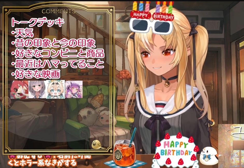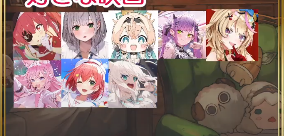 1x: Aqua, Ayame, Chiroru, Gura, Hal, Koyori, Lamy, Mio, Nerumero, Shion, Toya