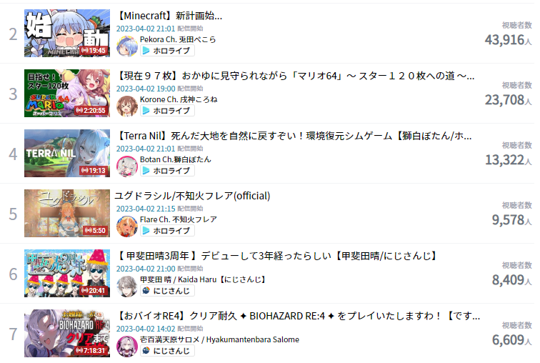 20) Pekora (Hololive) - 38,617 - Minecraft