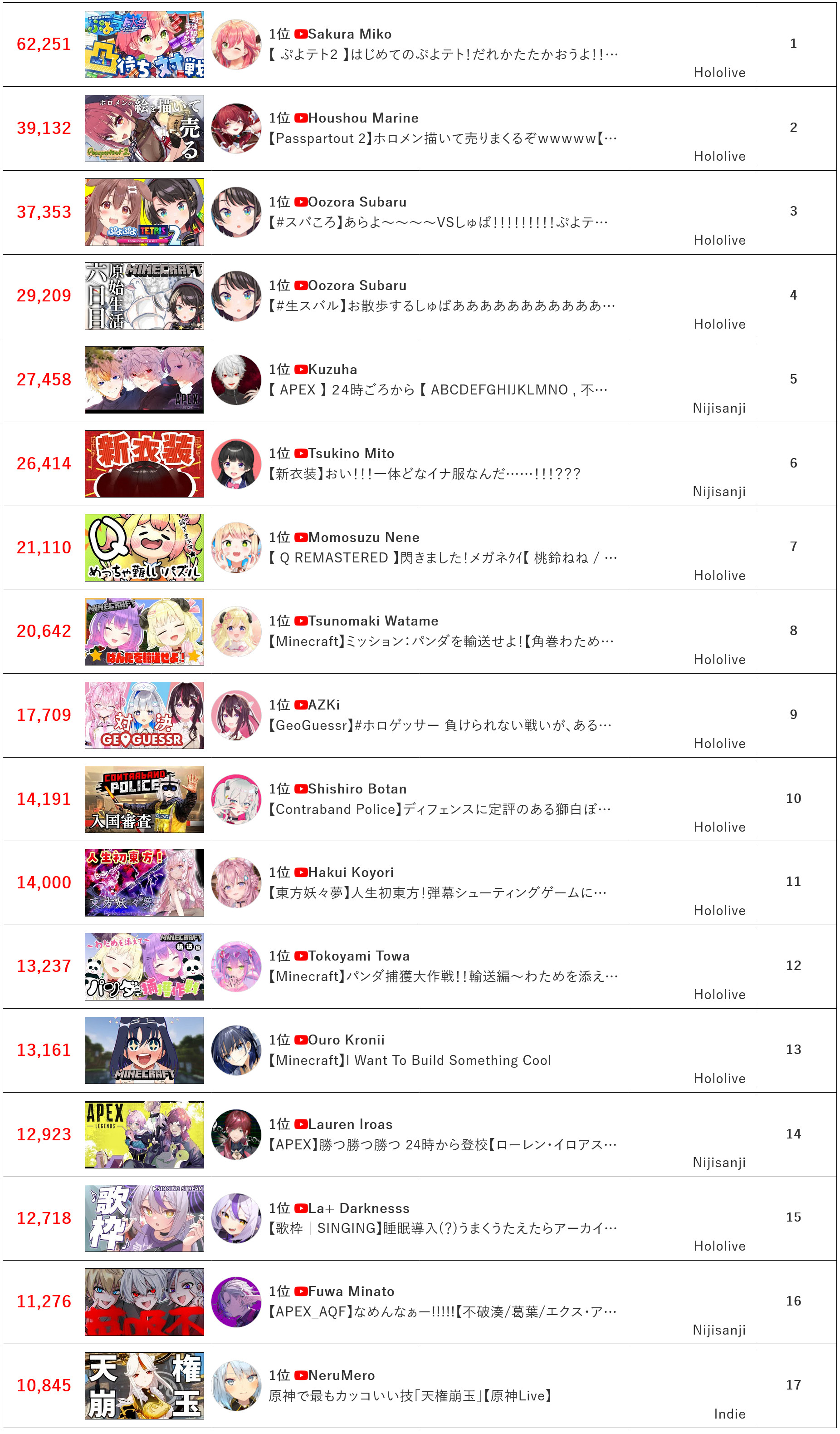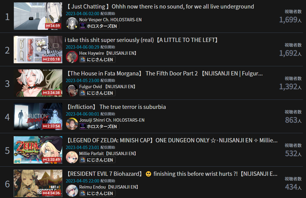 >>46694770>APRIL 2023 GOLDS1) Toya (Nijisanji) - 56,531 - Genderbent stream