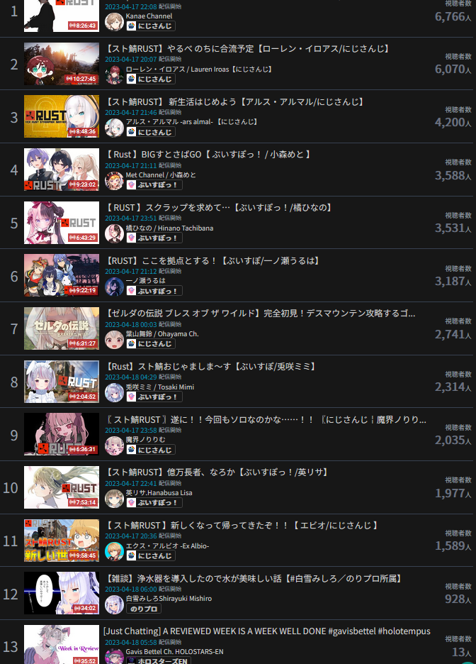 >>47551097>APRIL 2023 GOLDS1) Toya (Nijisanji) - 56,531 - Genderbent stream