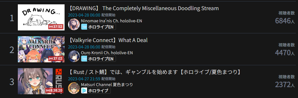 >>48239752>APRIL 2023 GOLDS1) Toya (Nijisanji) - 56,531 - Genderbent stream