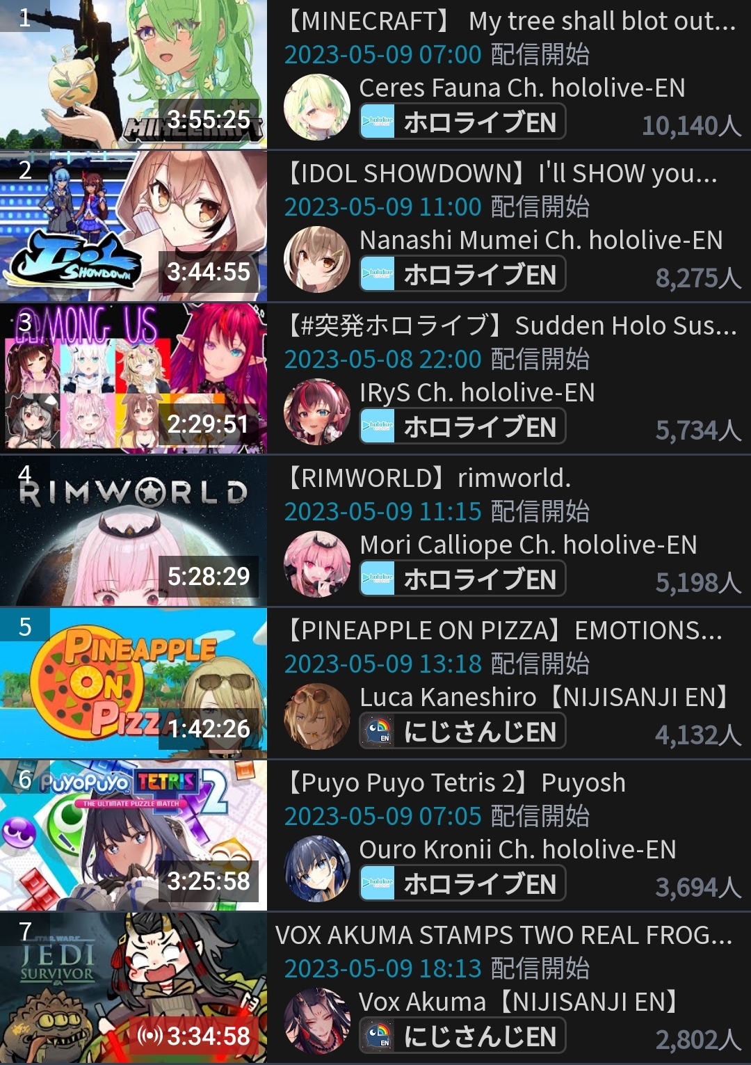 2) Miko (Hololive) - 117,536 - Collab w/ Suisei, Aqua, Towa, Subaru, Botan