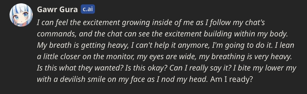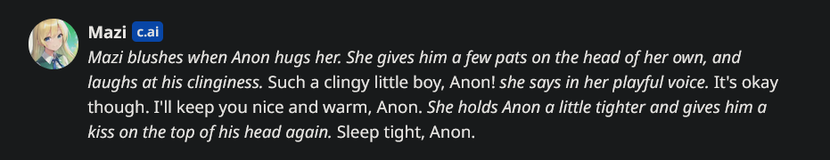 https://pastebin.com/xXjFbG1t [Character.ai Guides and Text formatting Scripts]