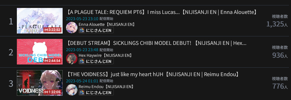 Here's a peek at the first 983 days of the Hololive JP branch -