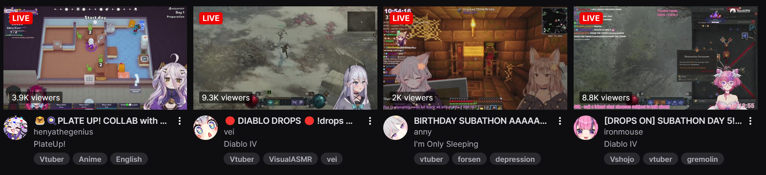 Henya is LIVE! And is just hanging out for the moment, but has a collab planned with Saiiren and Domics today in Plate Up. Weird collab but it is what it is. But if failing at running a restaurant isn't your thing then Zen and Haruka are also LIVE! And they're playing Halo together with Geega and Jowol. Finally Mouse is still live for her subathon and is playing Diablo 4, while in + action Aethel's live and hanging out, or Jowol's also live if you want a possible 3rd POV on the Halo collab. That's it for now so keep things comfy and civil by ignoring and especially reporting bait, and being excellent to each other.