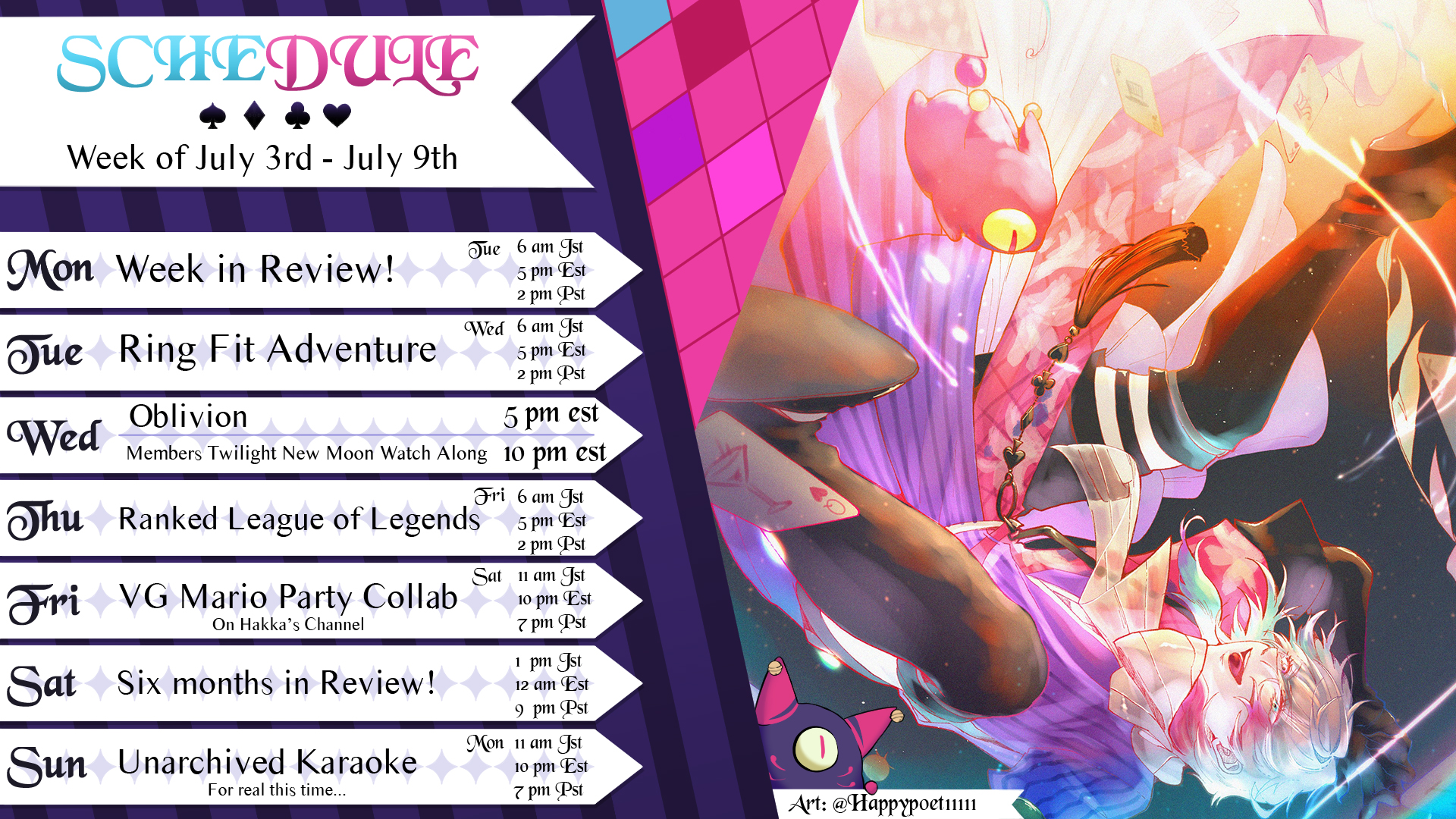 Schedule: https://teamup.com/ksvy41xvgrjjytwgd9