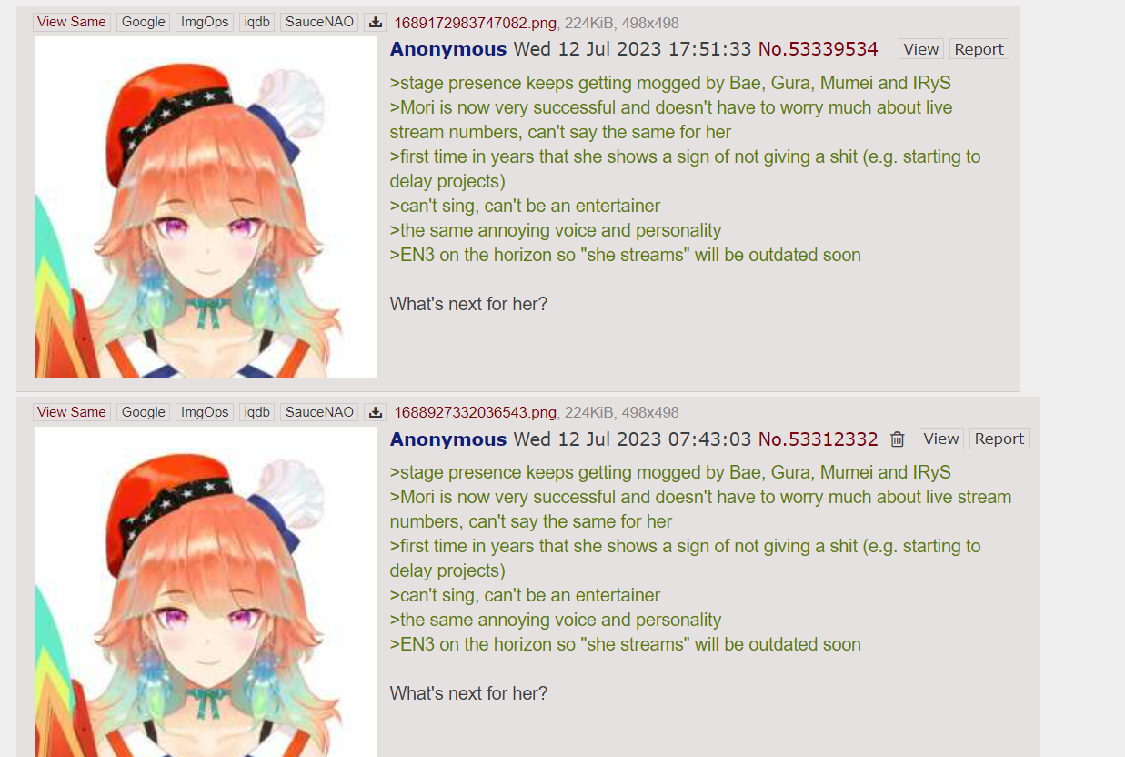 >Mori is now very successful and doesn't have to worry much about live stream numbers, can't say the same for her