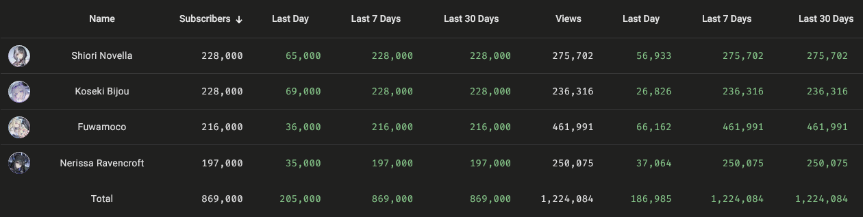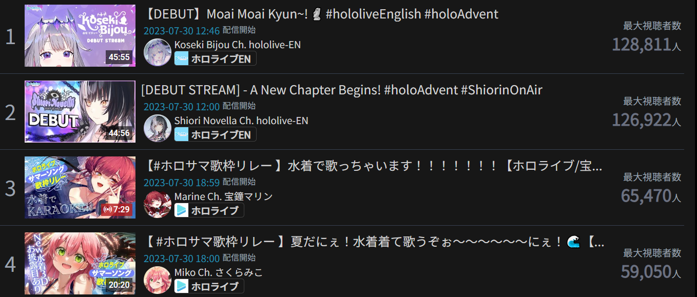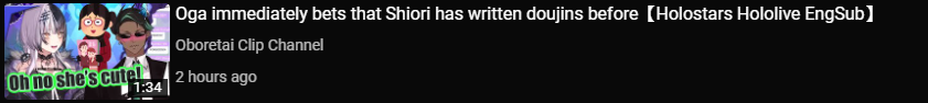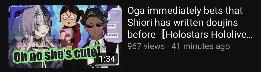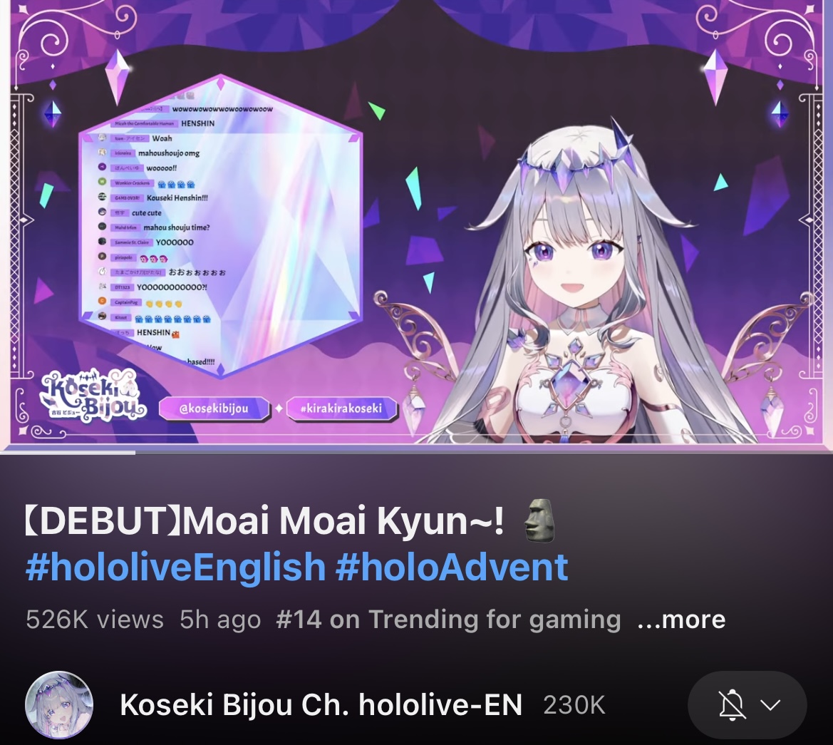 Higher production value content is obviously a lot of work and especially so given the restrictions of being under Cover and Shiori might not want to deal with it. She could approach her content like Ina, Kronii, or Mio where they don’t really put that much into it, relatively speaking, and is in Hololive for other reasons like making friends with other members or is just more casual about being a part of Hololive. On the other hand, she could approach her content more ambitiously like Mori, Bae, or Pekora to challenge herself to output high quality content and to experiment with new content. If she’s in the latter camp, I think there’s a possibility of something special happening that could take all of us by storm. If she’s in the first camp, then I expect it’ll be hard for her to gain traction much like with what happened to Sana. Her positioning in Advent as gen lead, Confidence during debut, and quality of debut make me think she’ll be the more ambitious type, but I suppose we’ll find that out in the next couple of weeks.
