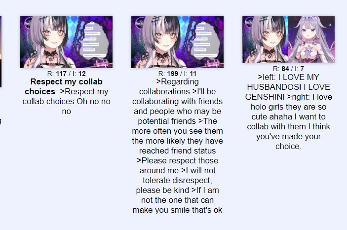I think Shiori has exceptional potential, but it is going to be a HARD sell and will ultimately depend on what her intentions are and what sort of effort she wants to put in.Perhaps it was to be expected but her twitter interactions did reveal quite a bit about how she carries herself. Her soft spoken voice and gentle mannerisms are quite the gap away from her model which some people may say is unfitting, but she clearly appreciates the aesthetics considering the husbando list and how in depth she went into the details of her model and is likely lean into it overtime. There was some nervousness and voice shake, which is to be expected, but compared to many other Holos, I’d say she is comparatively confident which indicates a good degree of experience, among other signs. Shyness is likely to subside within a week or two at the most.