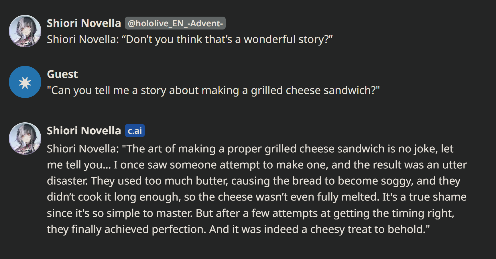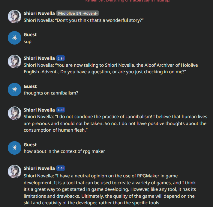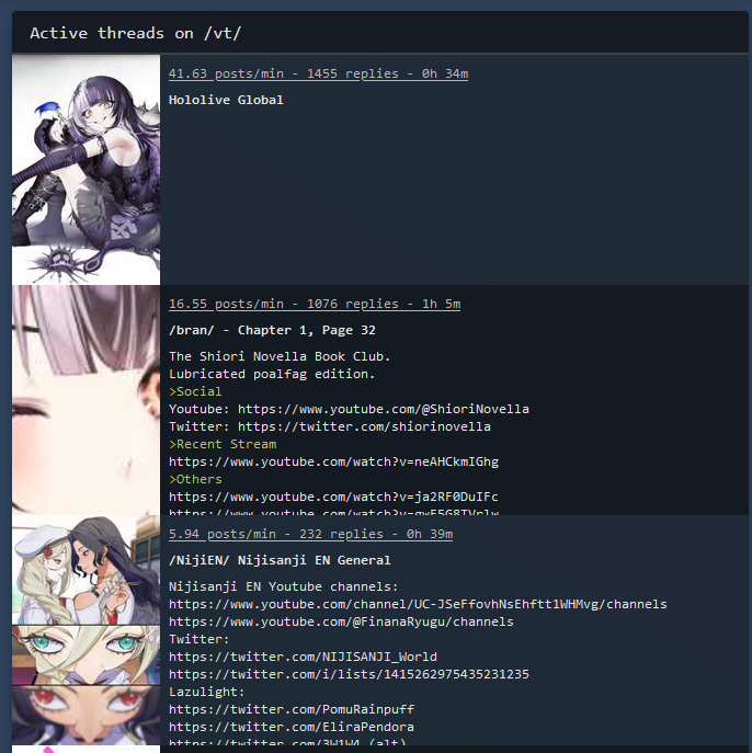 I was so worried that Shiori would be a boring bland moeblob (considering the voice) and expected that she would have been lobotomized by Cover already. Worst case scenario would be if she ended up as bland, vanilla, and normie as Nerissa, but she managed to redeem herself. She always showed signs of being completely unhinged with based tastes from being /here/, but I never could have expected her to completely throw off her chains and reveal her powerlevels in her first stream. I worry she will end up completely neutered by management in the near future, similar to what happens to every similar menhera (Riifu, Sava, etc). Enjoy it while it lasts bros...and let's pray that Jap and co let Shiori stay her based self.