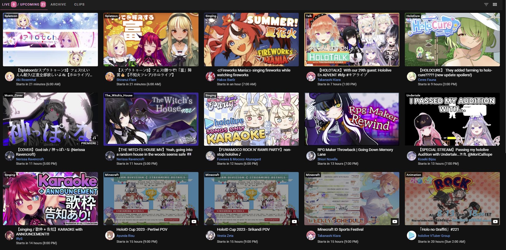 1x: Air, Ayame, Beni, Chloe, Choco, Fuwamoco, Gaku, Gura, Gundou, Hibari, Himawari, Ina, Kaede, Kanata, Kanato, Kiara, Laplus, Lize, Maimoto, Mel, Mito, Mori, Noel, Nose, Nozomi, Nui, Polka, Ponto, Qpi, Rikiichi, Roco, Ryushen, Shion, Tsukasa, Ui