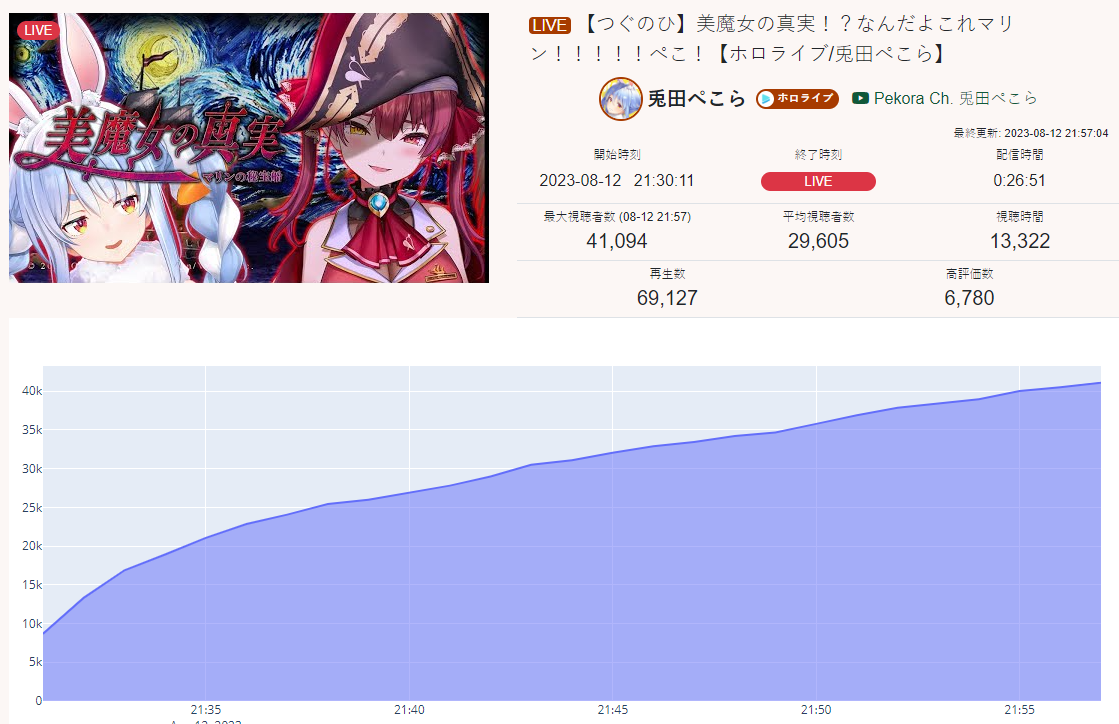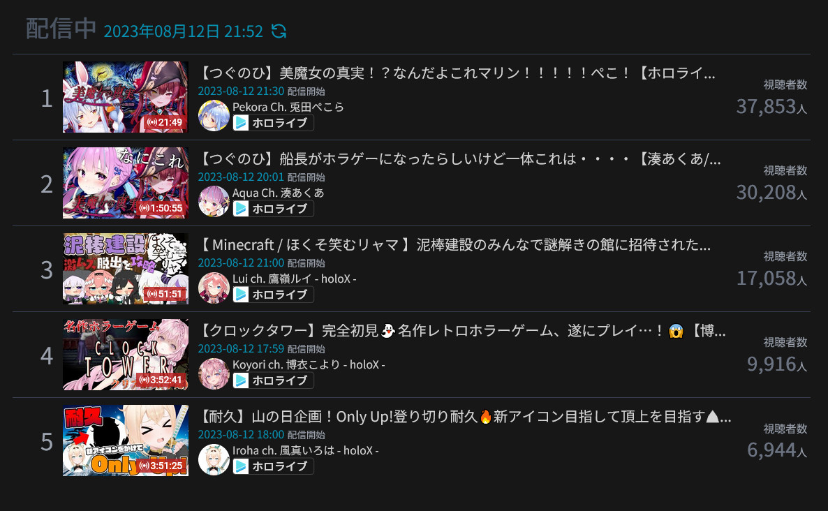 >>55889370>AUGUST 2023 GOLDS1) Miko (Hololive) - 148,555 - Anniversary 3D Live