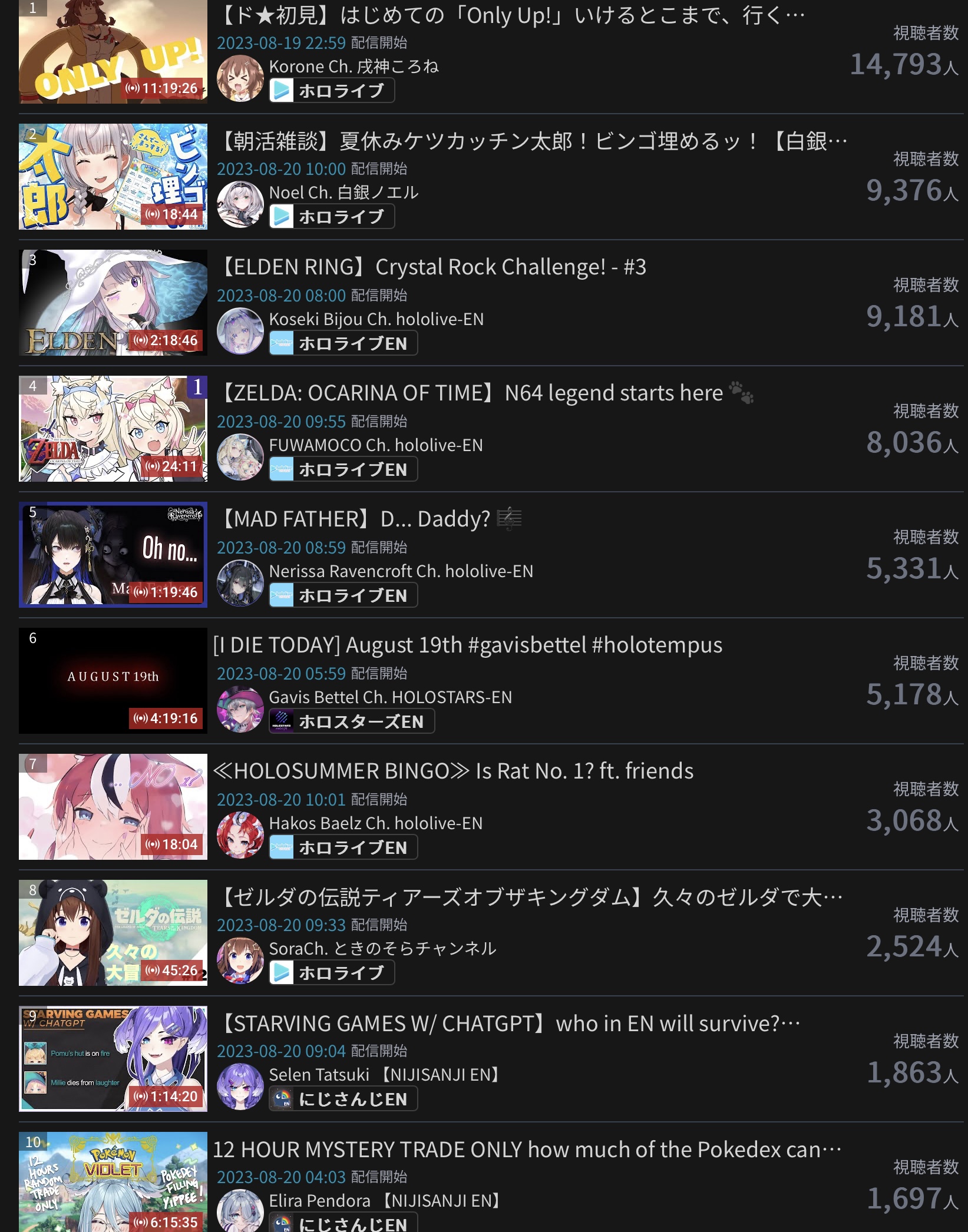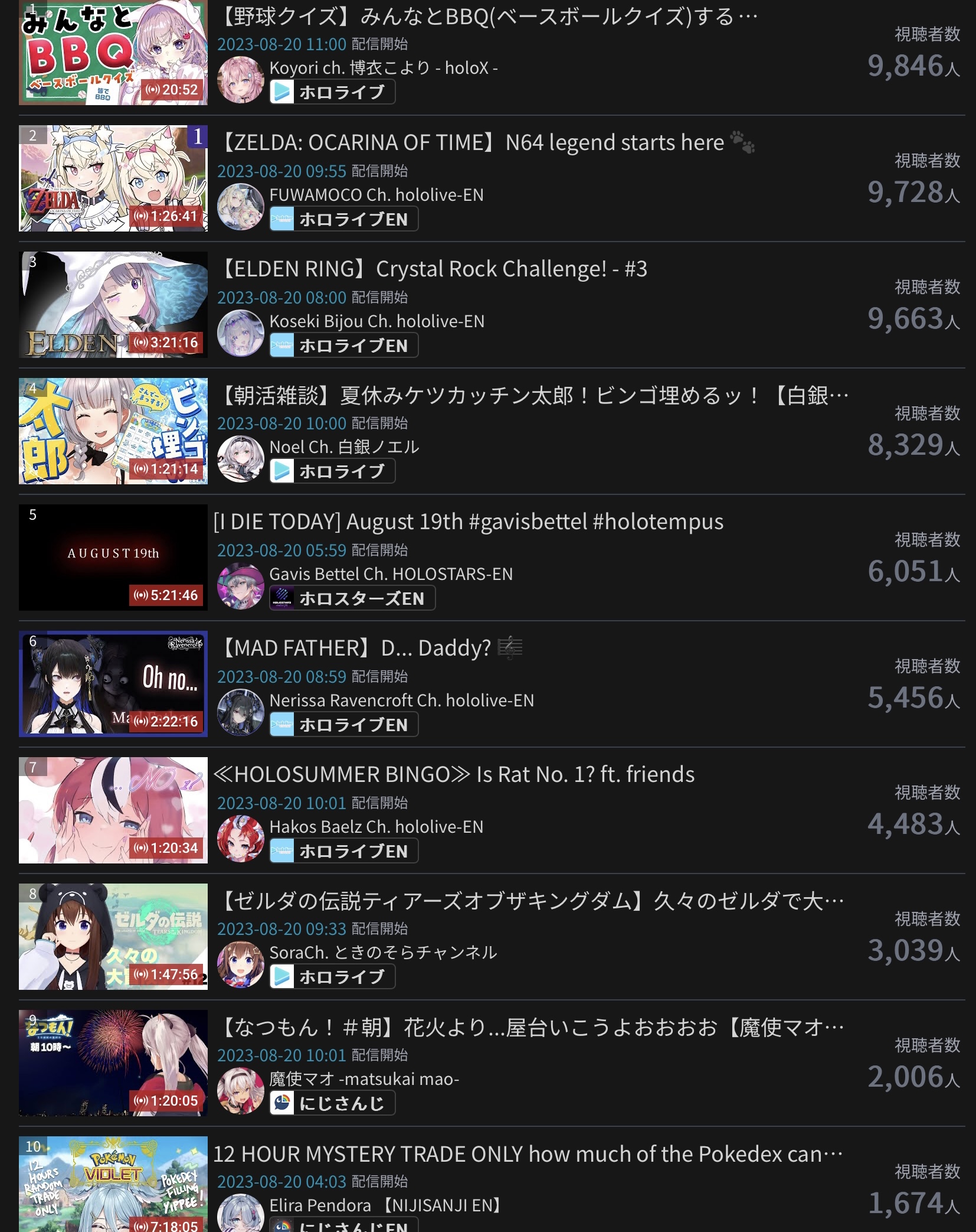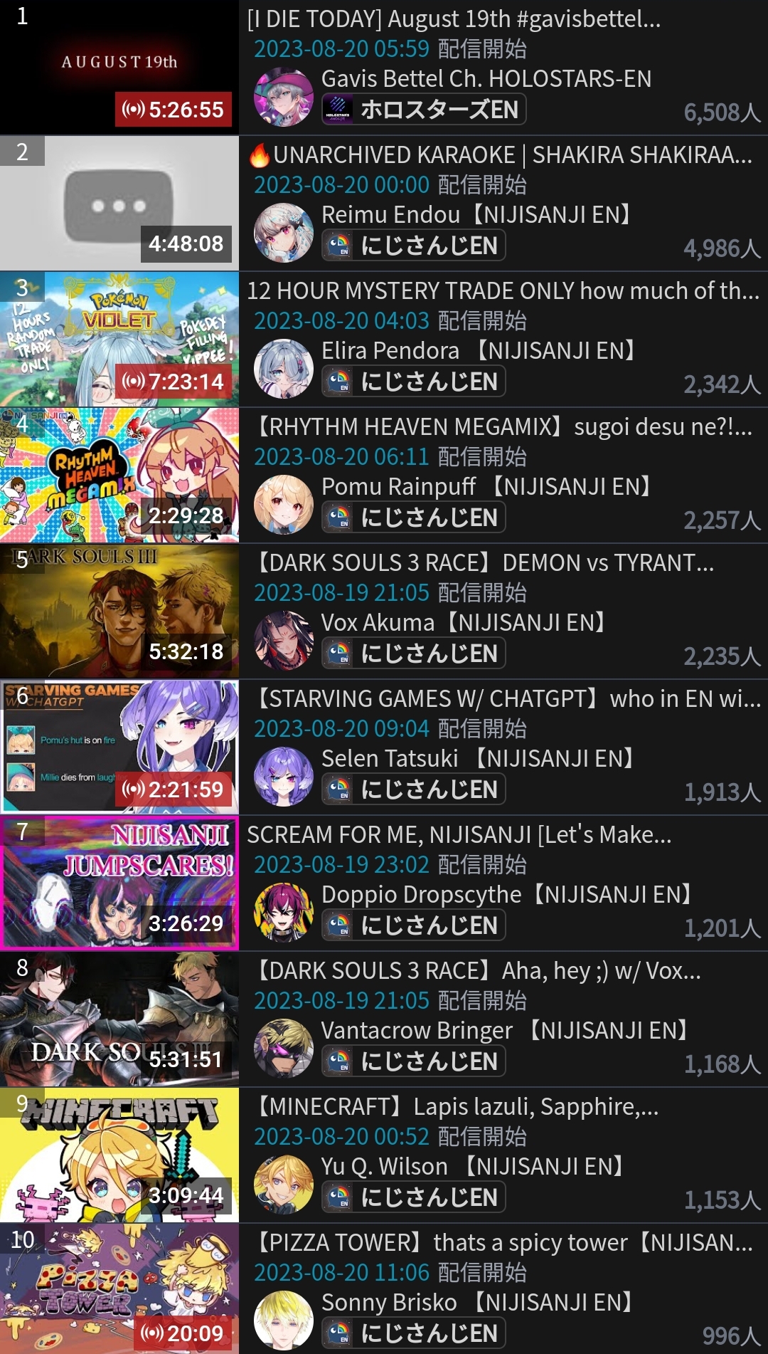 10) Nijisanji (Nijisanji) - 94,194 - Koshien Pre-Tournament Stream