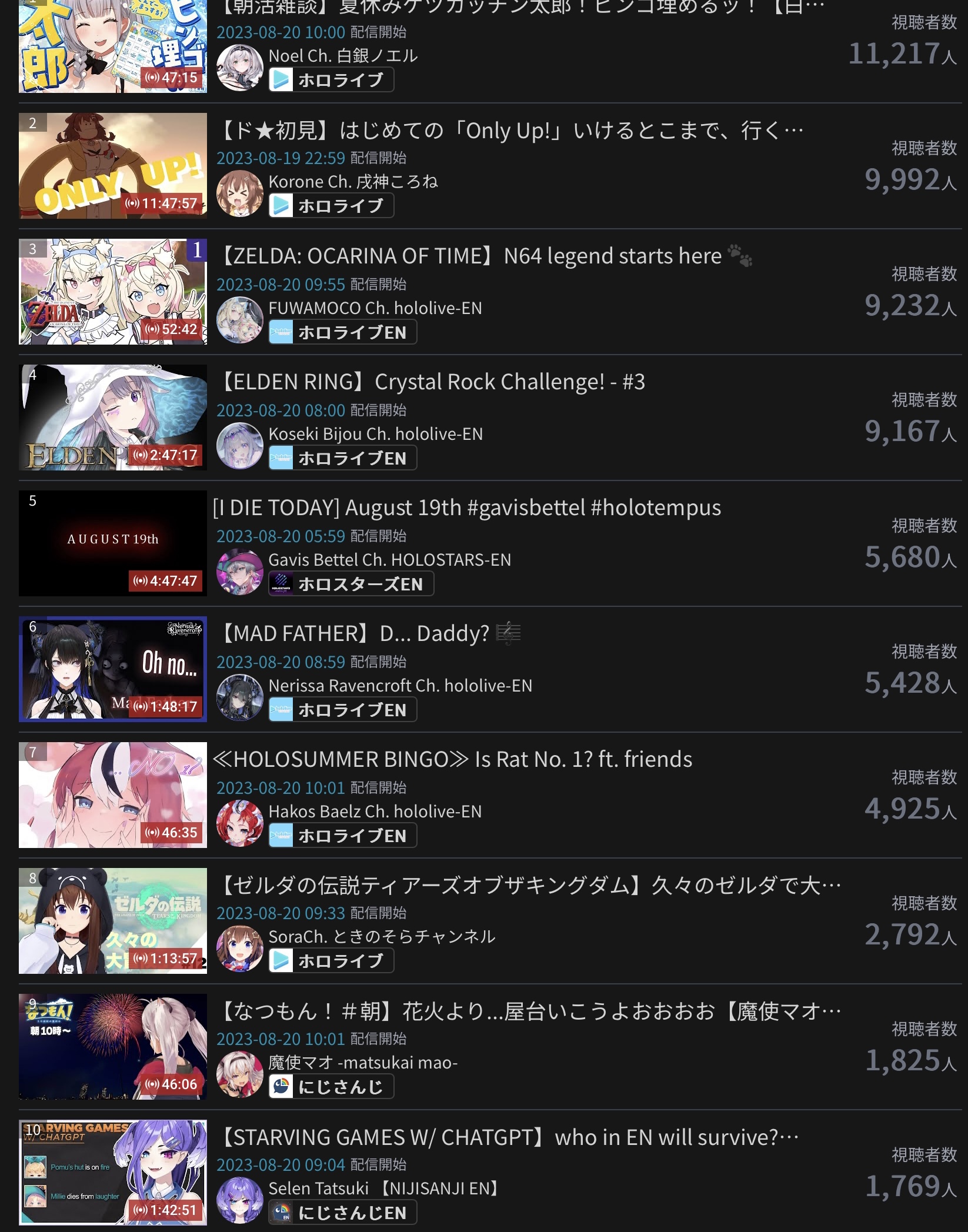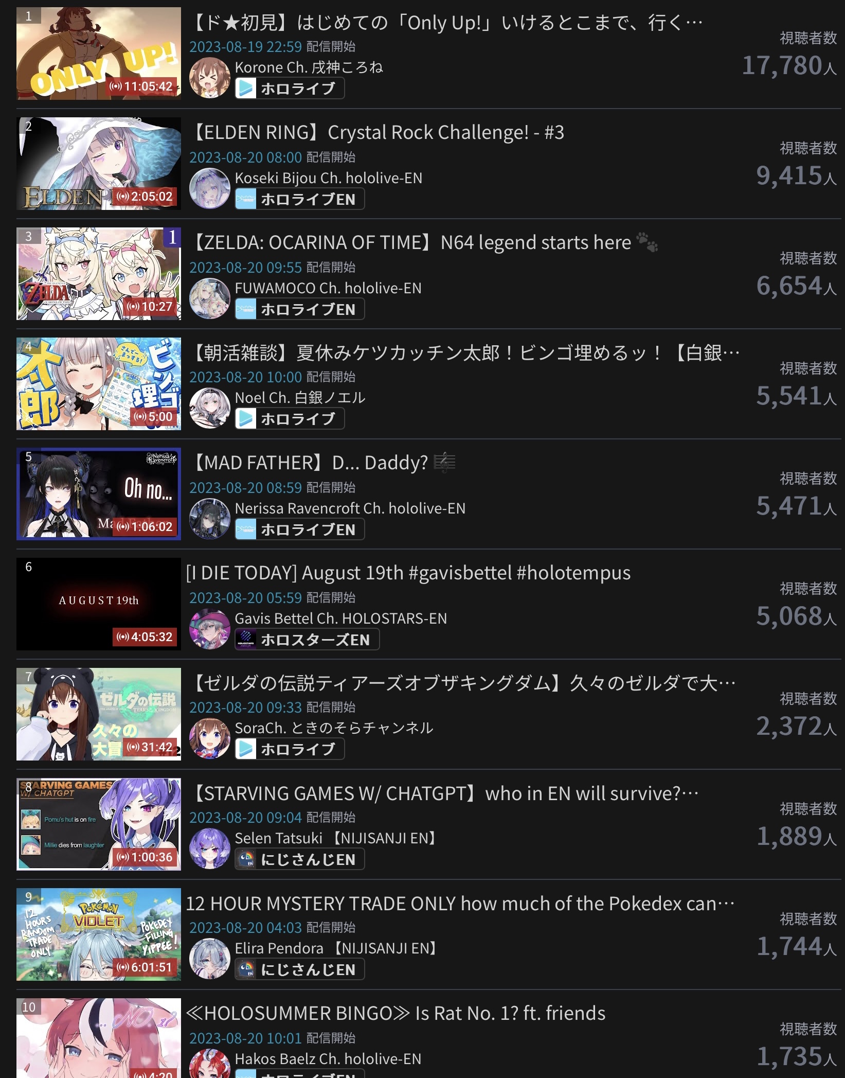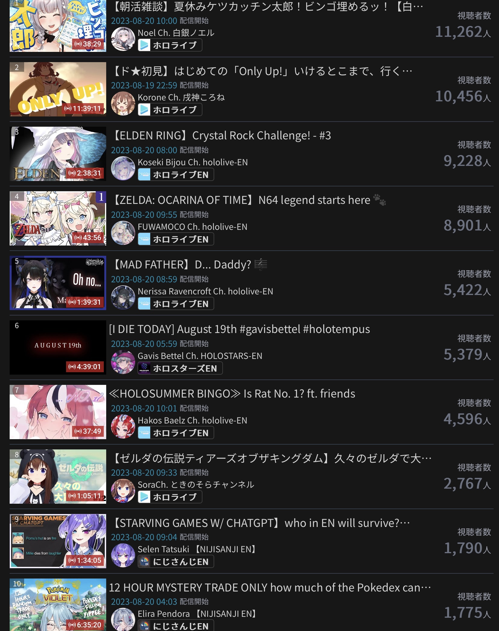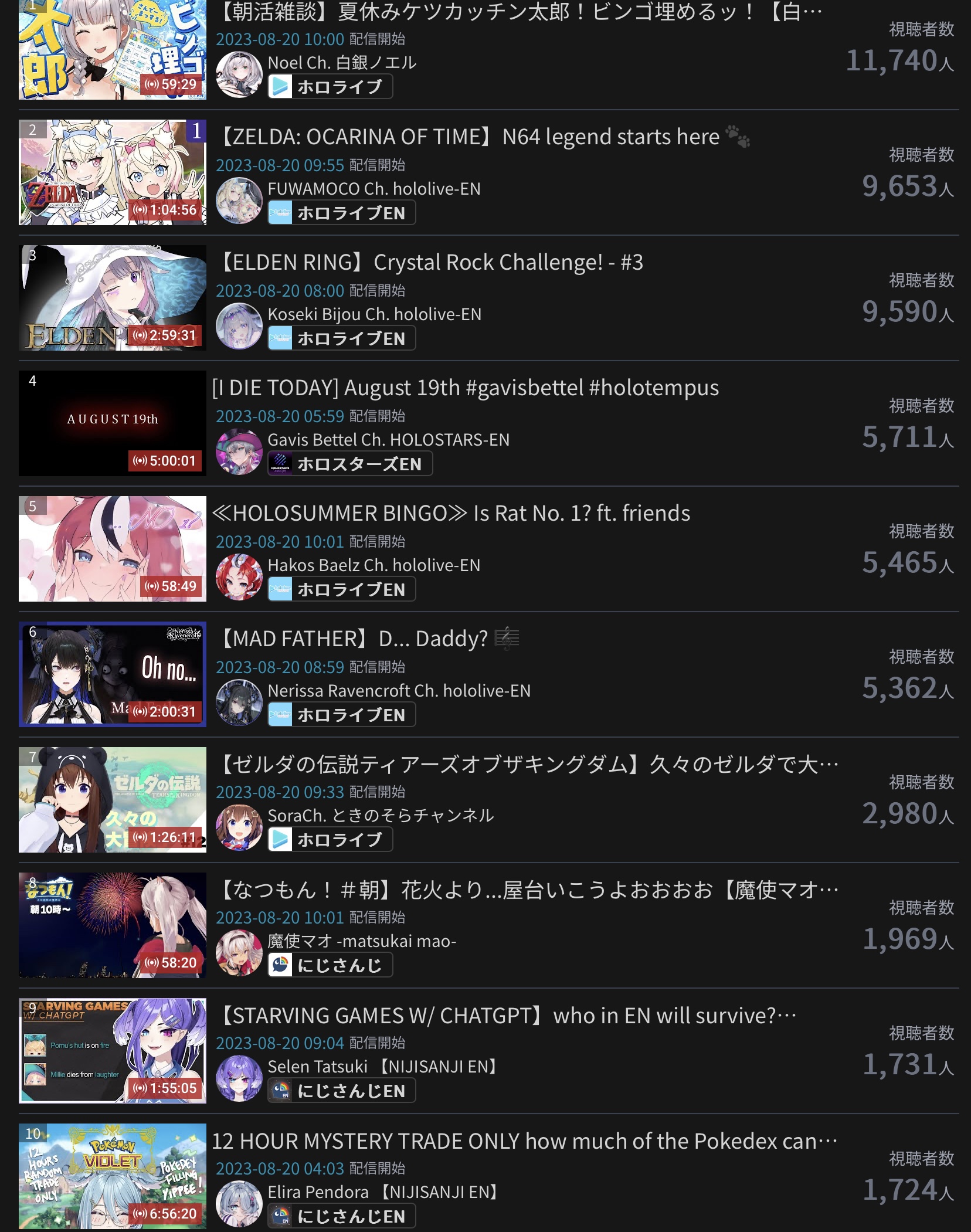 10) Nijisanji (Nijisanji) - 94,194 - Koshien Pre-Tournament Stream