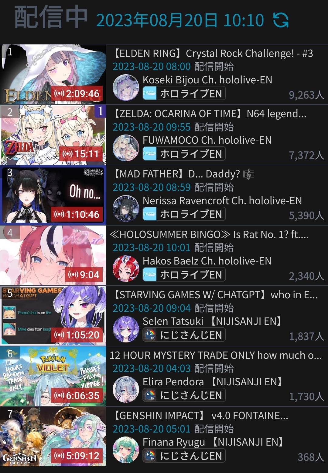 >PER STREAMER6x: Nijisanji
