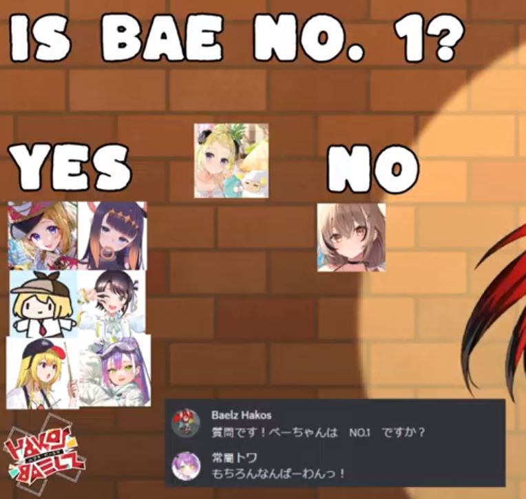 1x: Air, Ayame, Beni, Chloe, Choco, Fuwamoco, Gaku, Gura, Gundou, Hibari, Himawari, Ina, Kaede, Kanata, Kanato, Kiara, Laplus, Lize, Mel, Mito, Mori, Noel, Nose, Nozomi, Nui, Polka, Ponto, Qpi, Rikiichi, Roco, Ryushen, Tsukasa, Ui