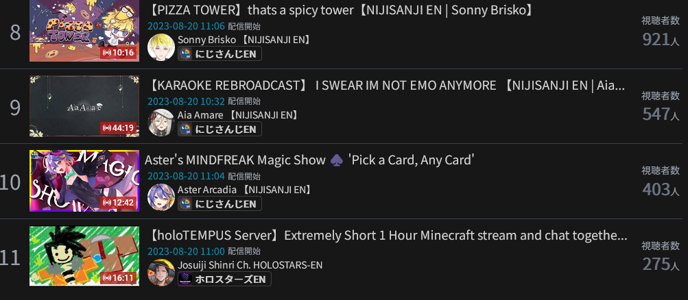 13) Nijisanji (Nijisanji) - 254,415 - Koshien Finals