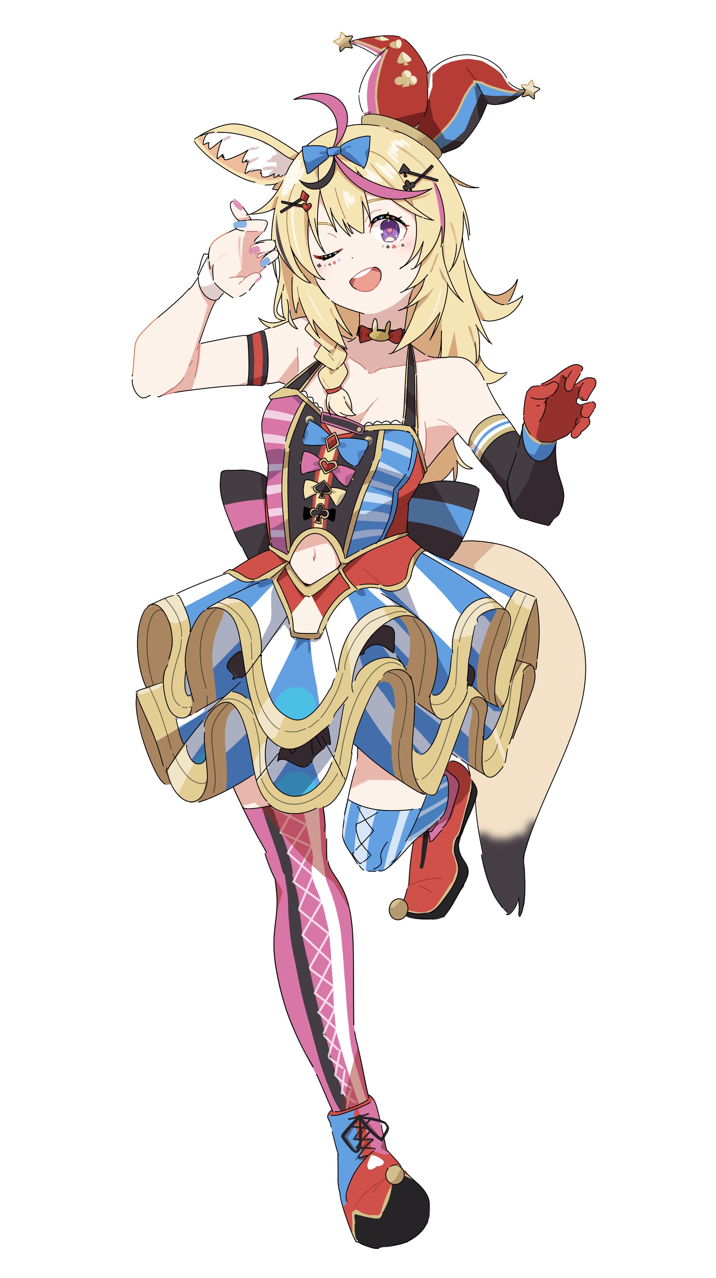 A circus performer who joined hololive in hopes of becoming the ringmaster of the VTuber world. She enjoys wowing audiences with acrobatics, and she lives by the words, "When you've decided you're gonna do something, follow through!" Her natural charm glosses over her occasional mess-ups.