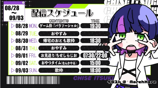 9/2: MUSIC VERSE LIVE #5 (Mori, Hano, KOKO, Tama, Aoi) https://v-clan.spwn.jp/events/23090220-musicverselive5