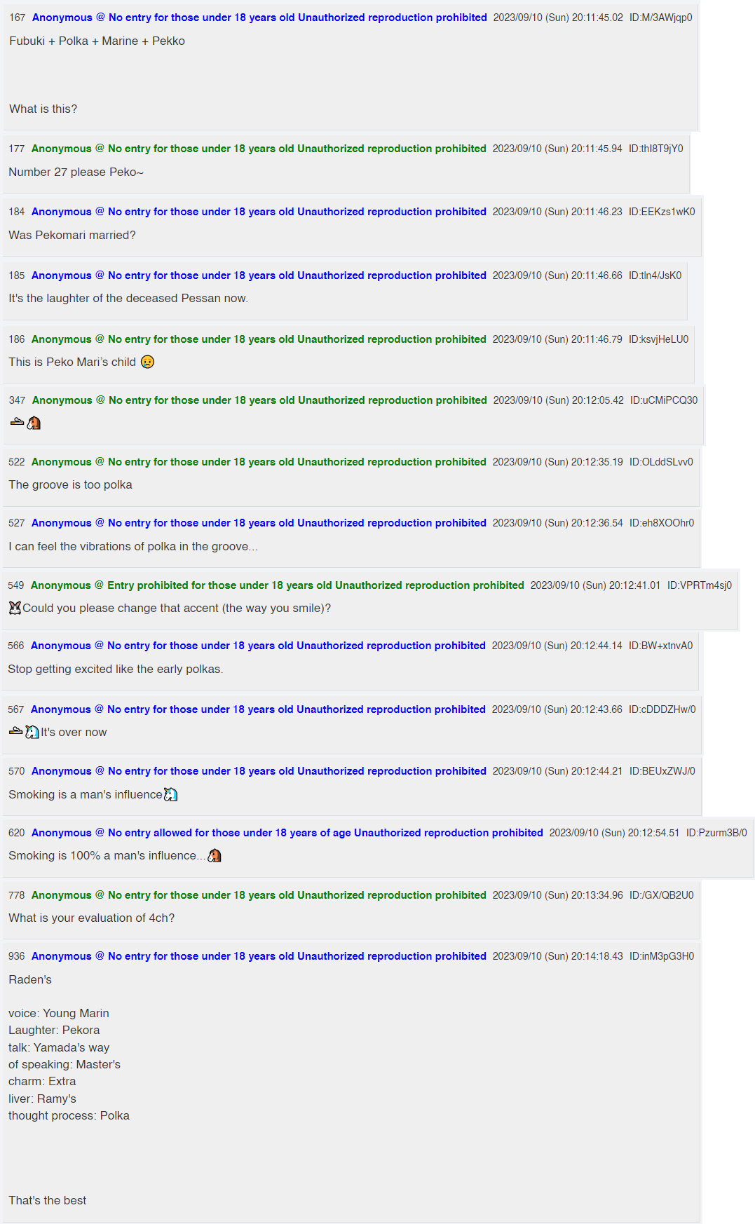 >>58205206We'll seriously have to wait a month or two+ to see how much these girls are actually into streaming, how they vibe off the fandom, other Holos etc. With them all being so weird and different it's quite possible some of them will just stop streaming in like a month or start doing homocollabs and lecturing their audience or something.