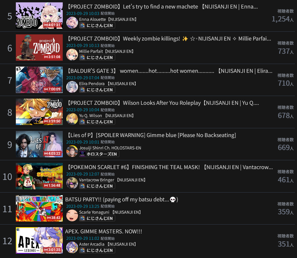 22) Lauren (Nijisanji) - 169,412 - 3D Debut