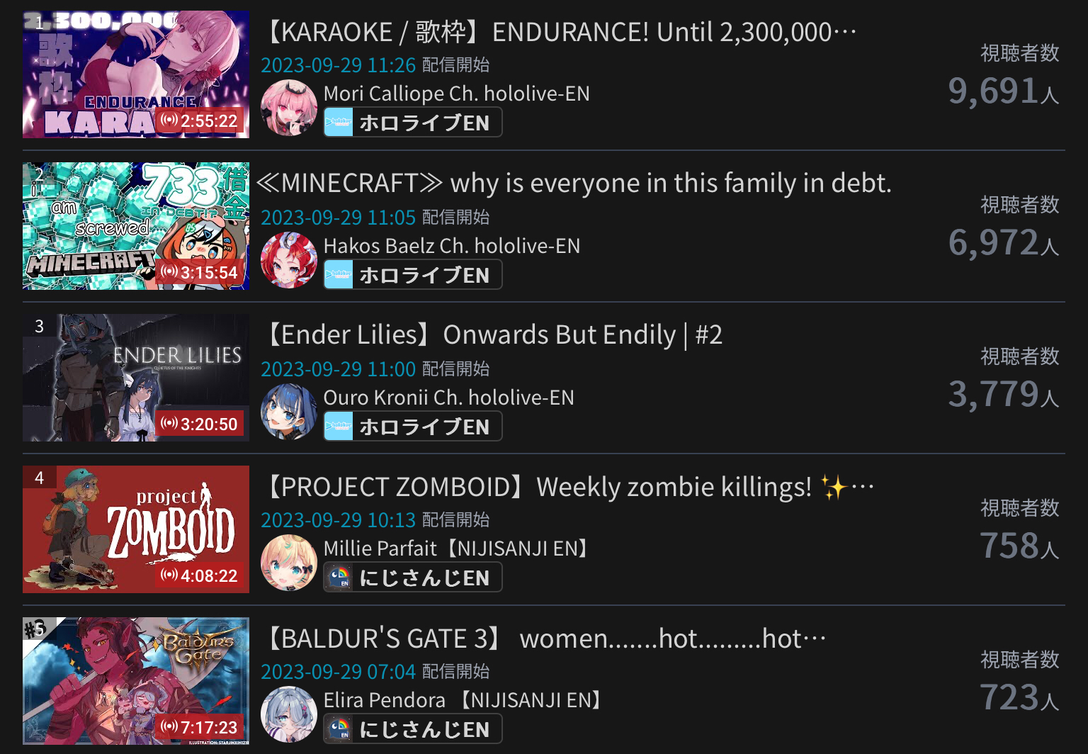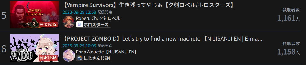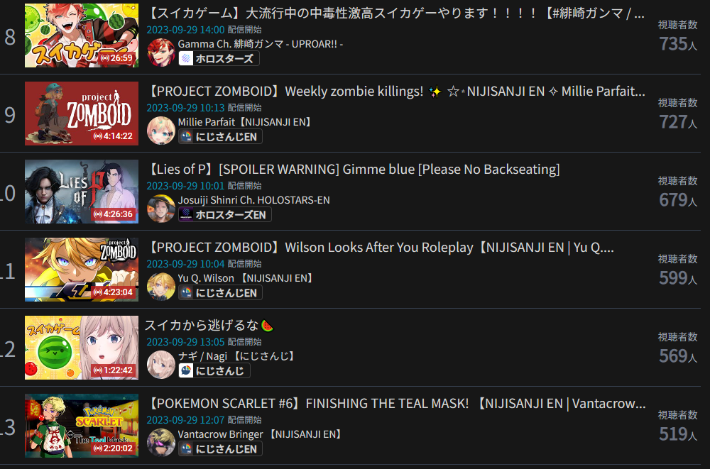 10) Raden (Hololive) - 129,772 - Debut Stream