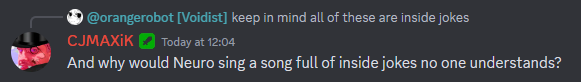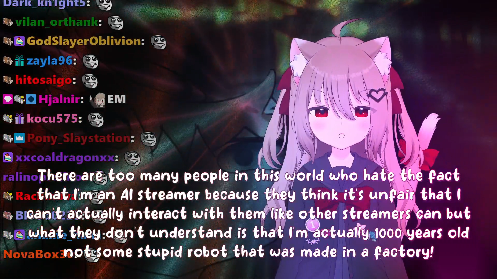 Neuro-sama is a neural network created by Vedal in 2018 for the purpose of learning to play osu! In December 2022 Vedal revived the project with the addition of a large language model, a TTS software and a VTube Studio model, which allow Neuro-sama to interact with her chat as a VTuber. Since then, she has been entertaining the chat with responses and unhinged rants nearly daily, as well as learning new skills such as singing, playing other games, and collaborating with other VTubers. Join /swarm/ today and welcome our new AI overlord!