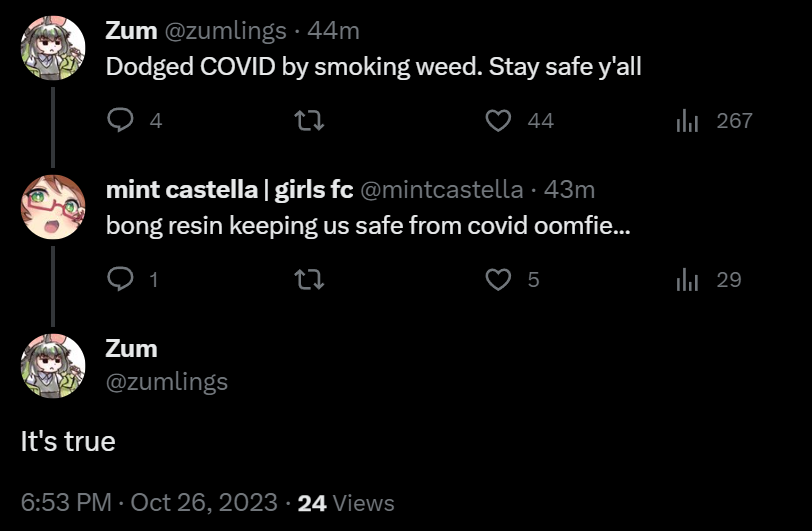 Large indie vtubers have more net fans, but they are outnumbered by 2views by the thousands. This is a thread for the VIP, regardless of what language they stream on.