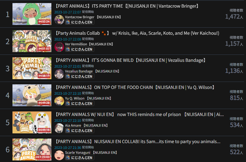 23) Miko (Hololive) - 72,931 - Clubhouse Games 51 (w/ Suo Sango)
