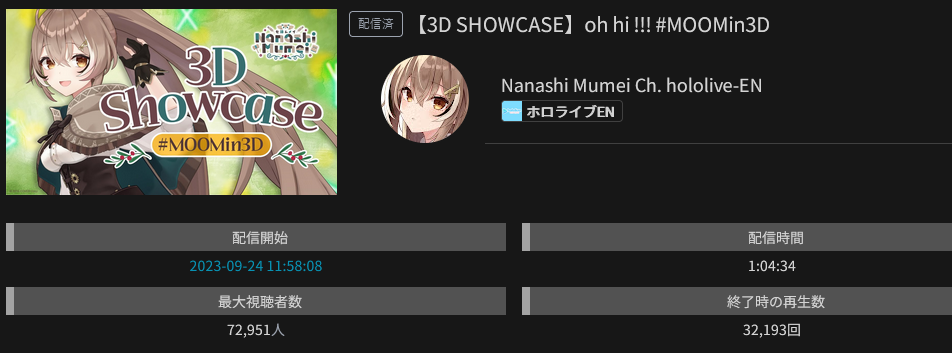 10) Luna (Hololive) - 68,607 - Birthday 3D Live