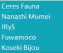 2x: Aki, Botan, Chloe, Fuwamoco, Hajime, Hinano, Ibrahim, Korone, Maimoto, Mel, Noel, Polka, Salome, Tsukasa