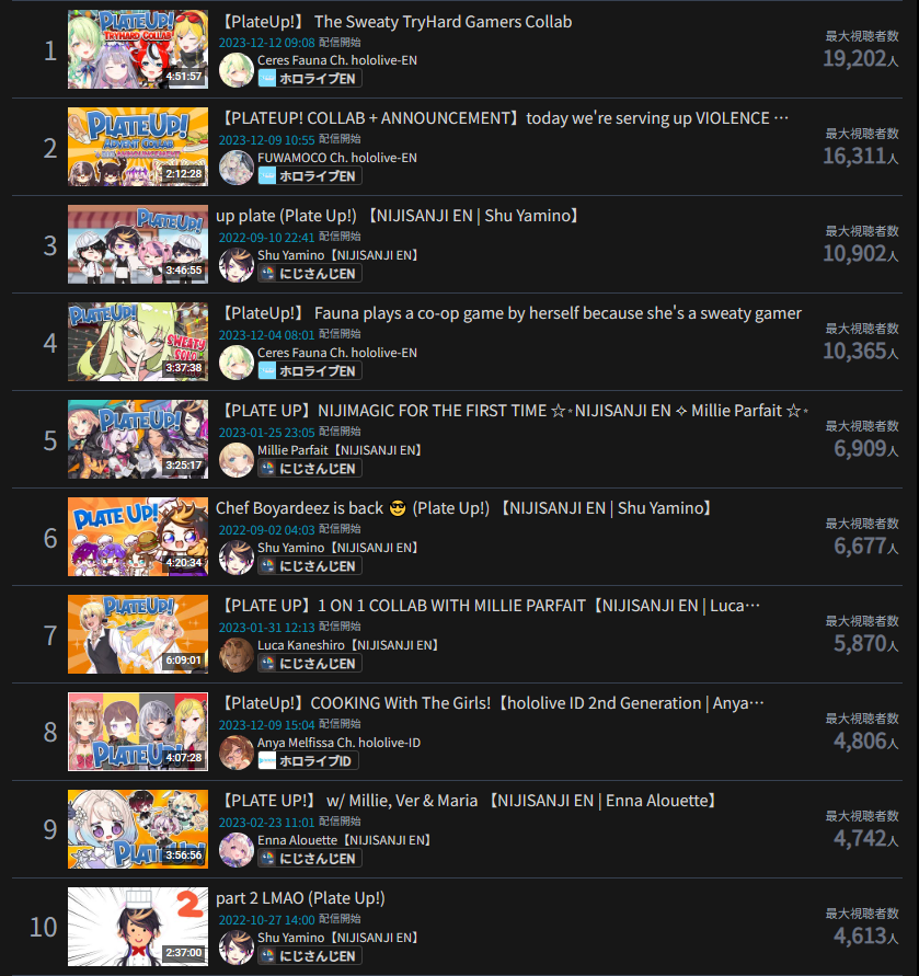 9) Korone (Hololive) - 56,638 - Splatoon Tournament