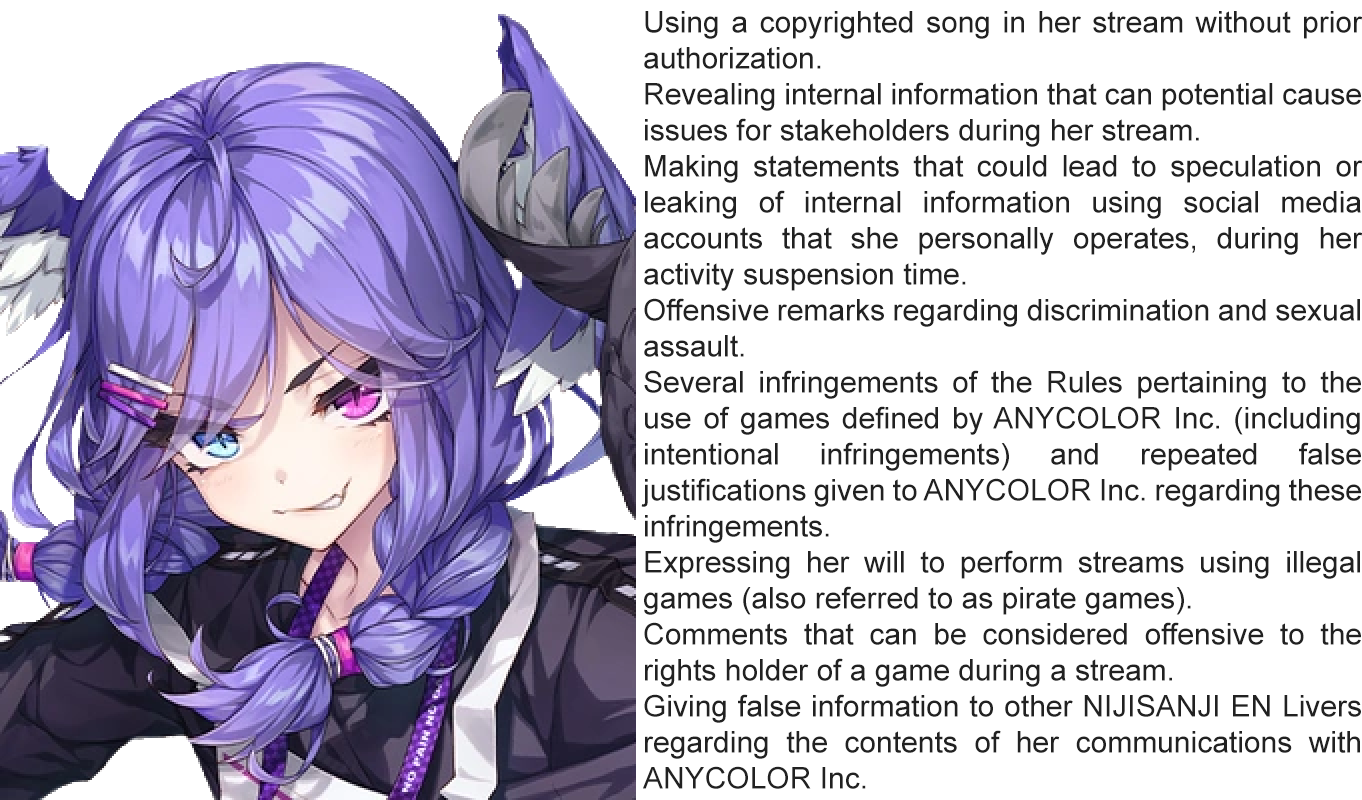 When she's inevitably axed, do you think Nijisanji is going to compose a huge list of her crimes, just to shame and humiliate her?