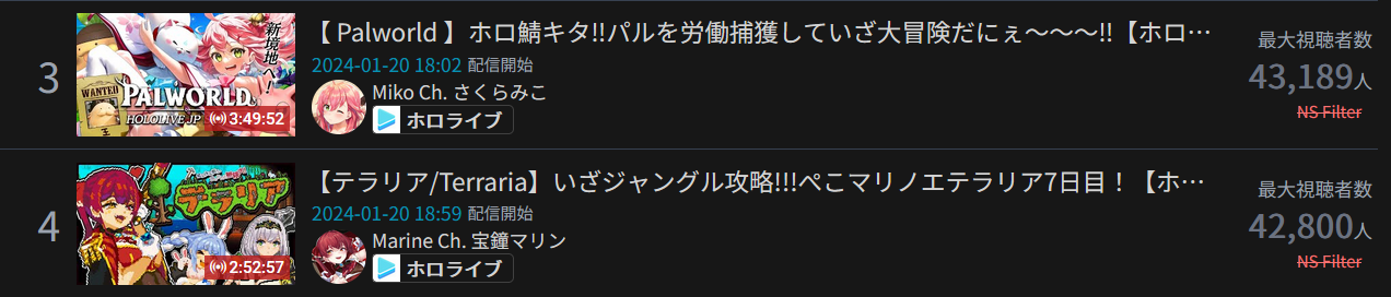 19) FuwaMoco (Hololive) - 25,498 - Palworld Collab w/ Advent