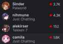 1: https://twitch.tv/akamikarubi (5,635) *Japanese