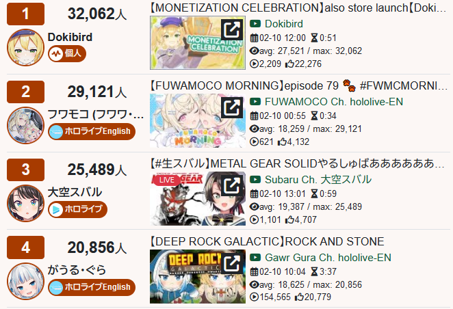 6) FuwaMoco (Hololive) - 35,991 - FuwaMoco Morning