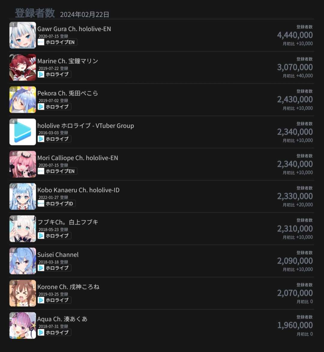 20) Fuwamoco (Hololive) - 24,362 - FuwaMoco Morning