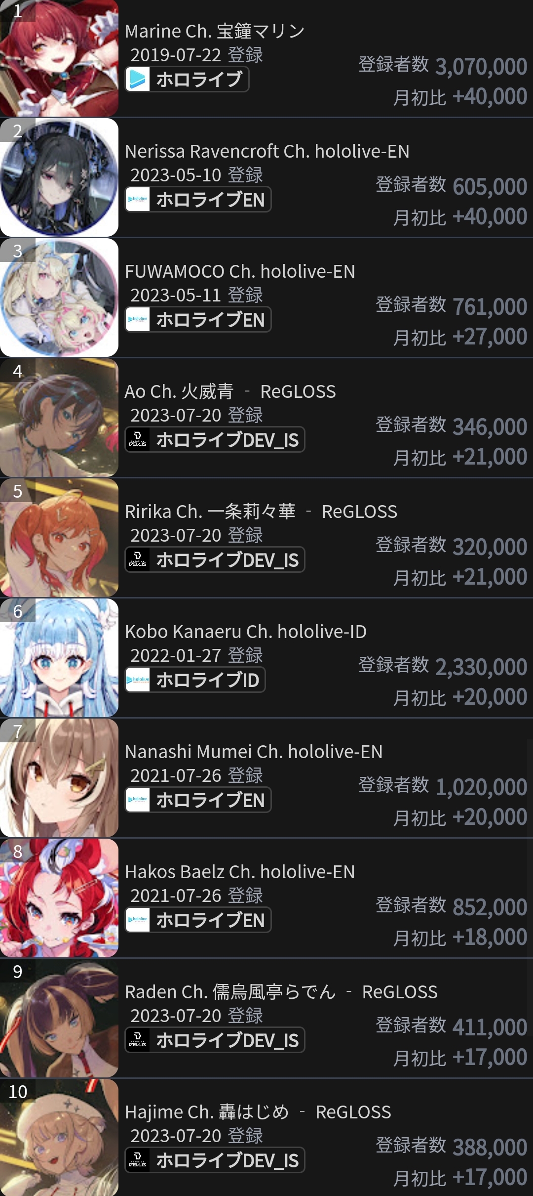 9) FuwaMoco (Hololive) - 25,934 - Bread and Fred